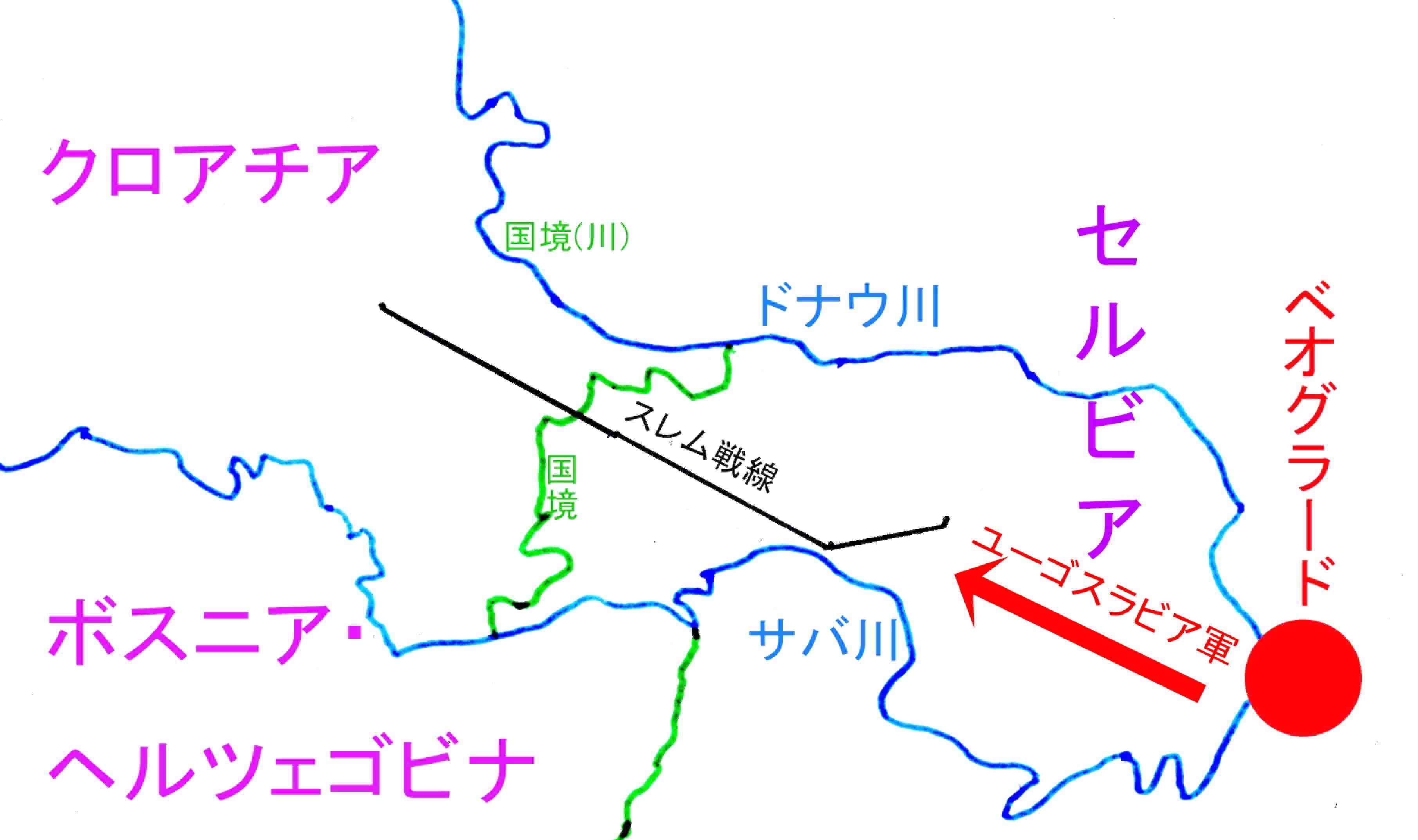 ドイツのスレム戦線とユーゴスラビア軍との戦いのイメージ地図