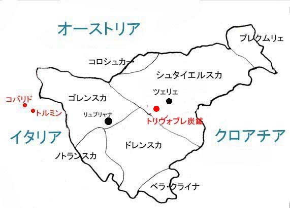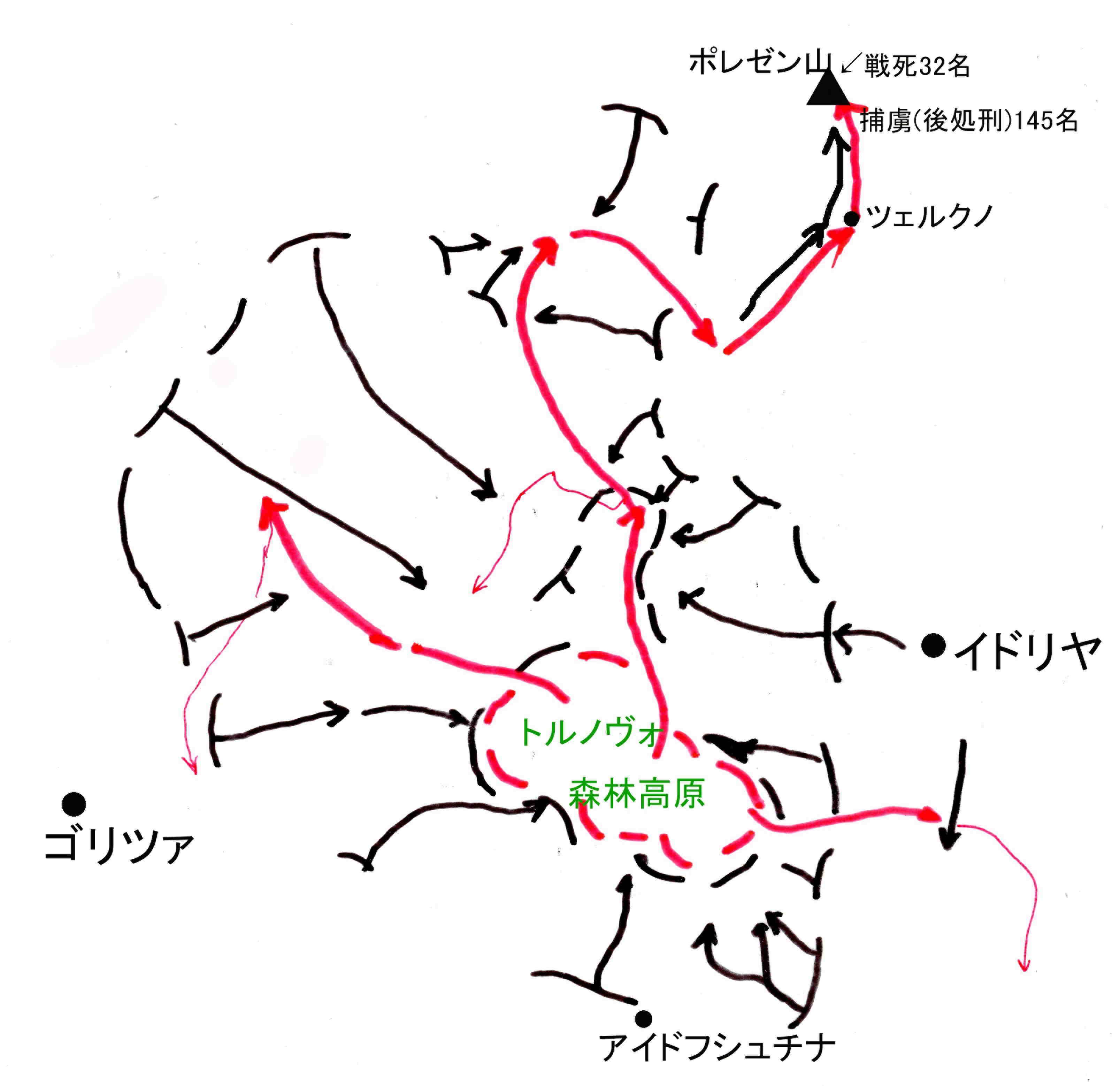(『Narodnooslobodilački rat u Sloveniji 1941–1945』p.253の図を参考に主要地点とルートを簡略化、カラー化して再構成)