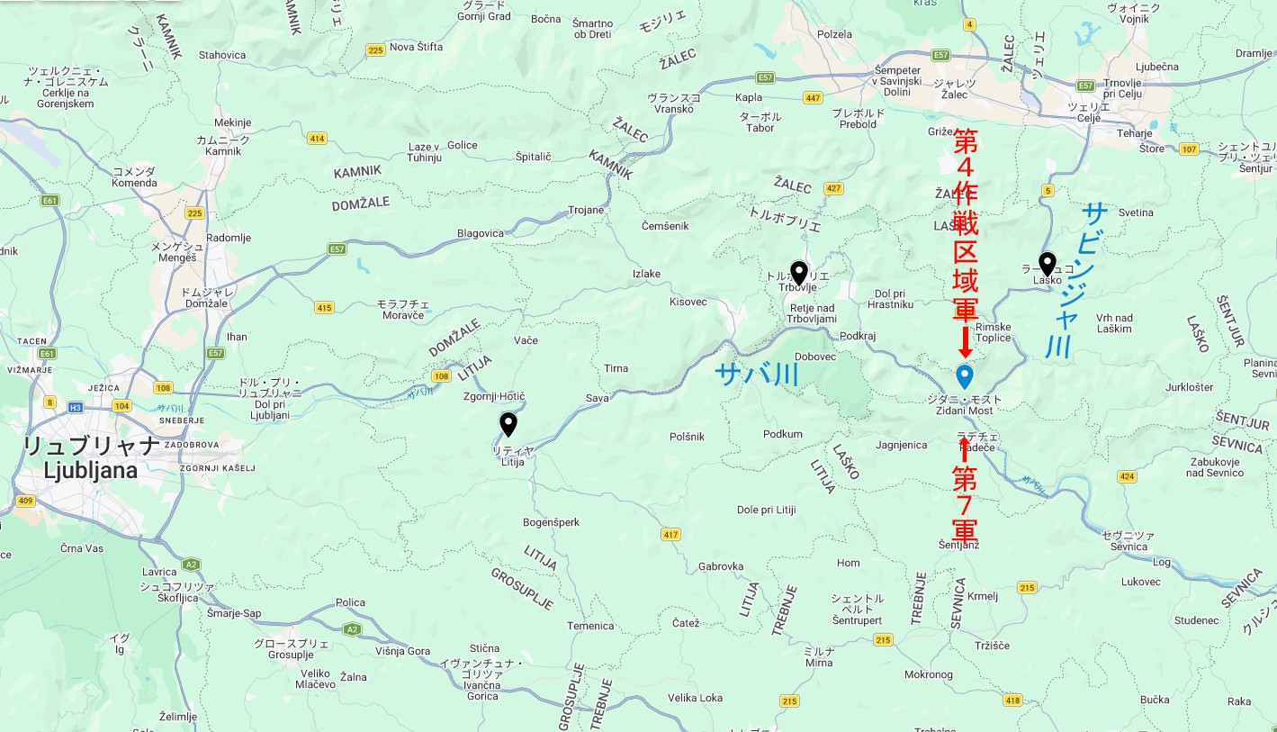 1945年春、ドイツ軍に手痛い打撃を受けてしまったのが、第4作戦区域の軍と第7軍団の連携によるサバ川渡航作戦の失敗だった。1945年2月25日の夜、サバ川北岸のLitijaリティヤ-Trbovljeトルボヴリェ-Laškoラシュコ一帯の工業都市を取り囲む農村・山岳地帯を拠点としていた第4作戦区域の部隊が、サバ川を渡って南へ進出し、ドレンスカおよびベラ・クライナを基盤とする第7軍団と合流しようとした。この南北連携の目的は、前年末のドイツ軍大攻勢によってシュタイエルスカの解放区を失い、山岳地帯に散在して弱体化していた同地方のパルチザン部隊を救出し、さらに兵力をドレンスカに集中させてドイツ軍の補給路・撤退路を脅かすことにあった。しかし、渡河地点であるサバ川とサビンジャ川の合流点ズィダニ・モスト(Zidani Most) はドイツ軍とドモブランツィ軍が強固に守備しており、増援部隊も駆けつけたため、第4作戦区域軍の渡河は阻止され、第7軍団の北上も妨げられた。両部隊は合流どころか、逆に第7軍団が包囲されて壊滅の危機に陥るほどの敗北を喫する結果となった。
