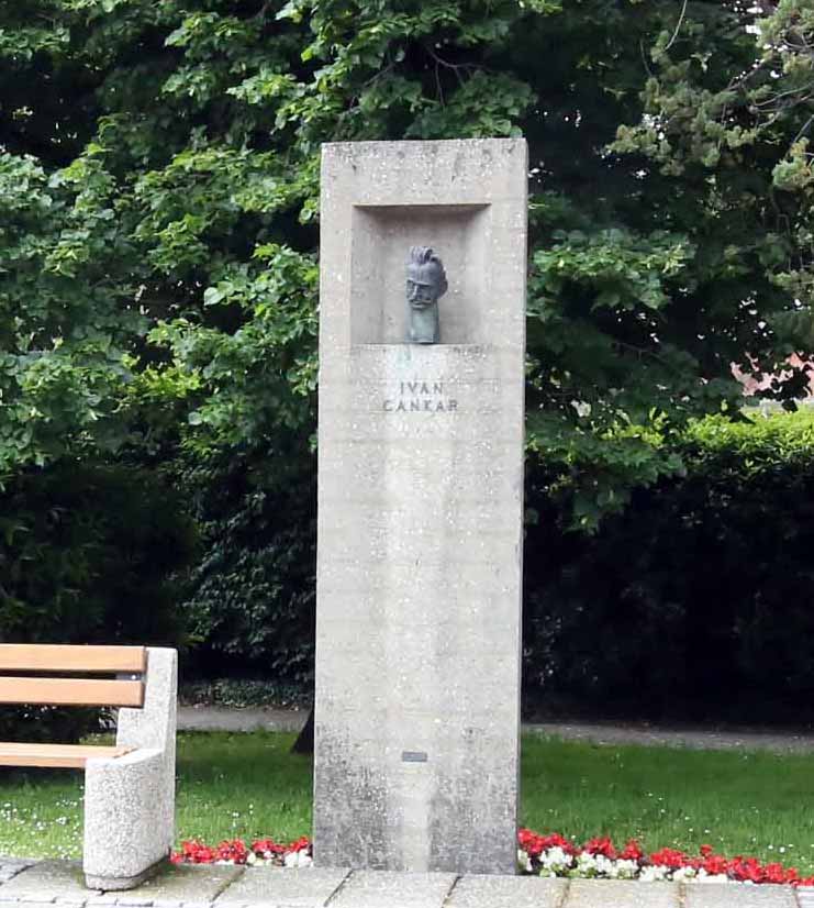 この最初の政府の建物の傍にあるイヴァン・カンカル(1876–1918)の胸像。スロベニア近代文学の父とされ、民族意識と社会正義を訴え続けた作家。1パルチザン部隊の名にも採用されたその思想が、スロベニア初代政府の精神的基盤となったためと思われる。(筆者撮影)