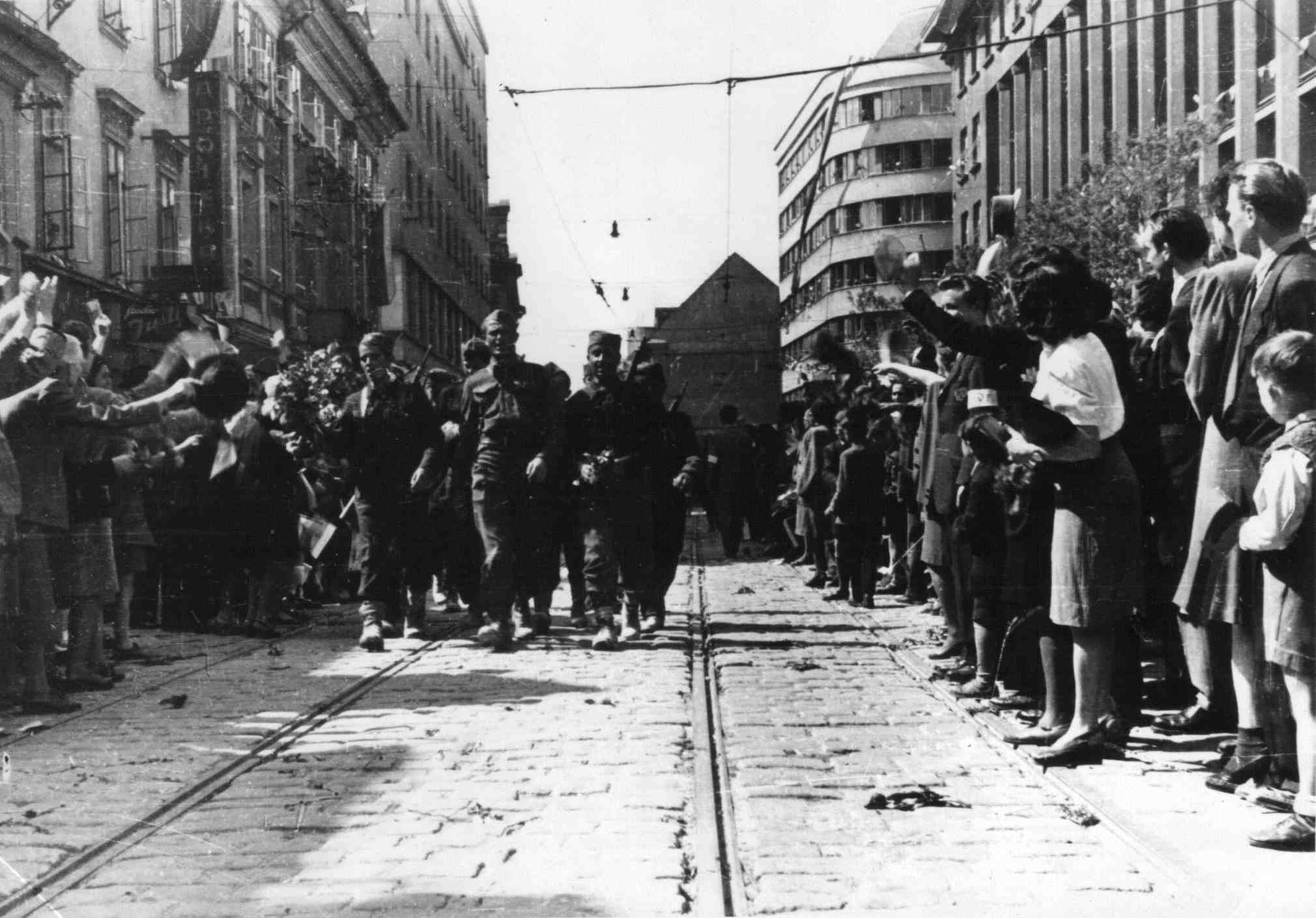ソ連軍によるプロクムリェの解放を皮切りに、ユーゴスラビア軍、西側連合国軍、ブルガリア軍との共同の作戦で、ついにスロヴェニア全土をパルチザンは解放することに成功した。スロヴェニアは、オーストリアへ逃げ込もうとするバルカン半島にいたドイツ軍など「敗残兵」の集まる場所となったが、この多くを捕獲した。