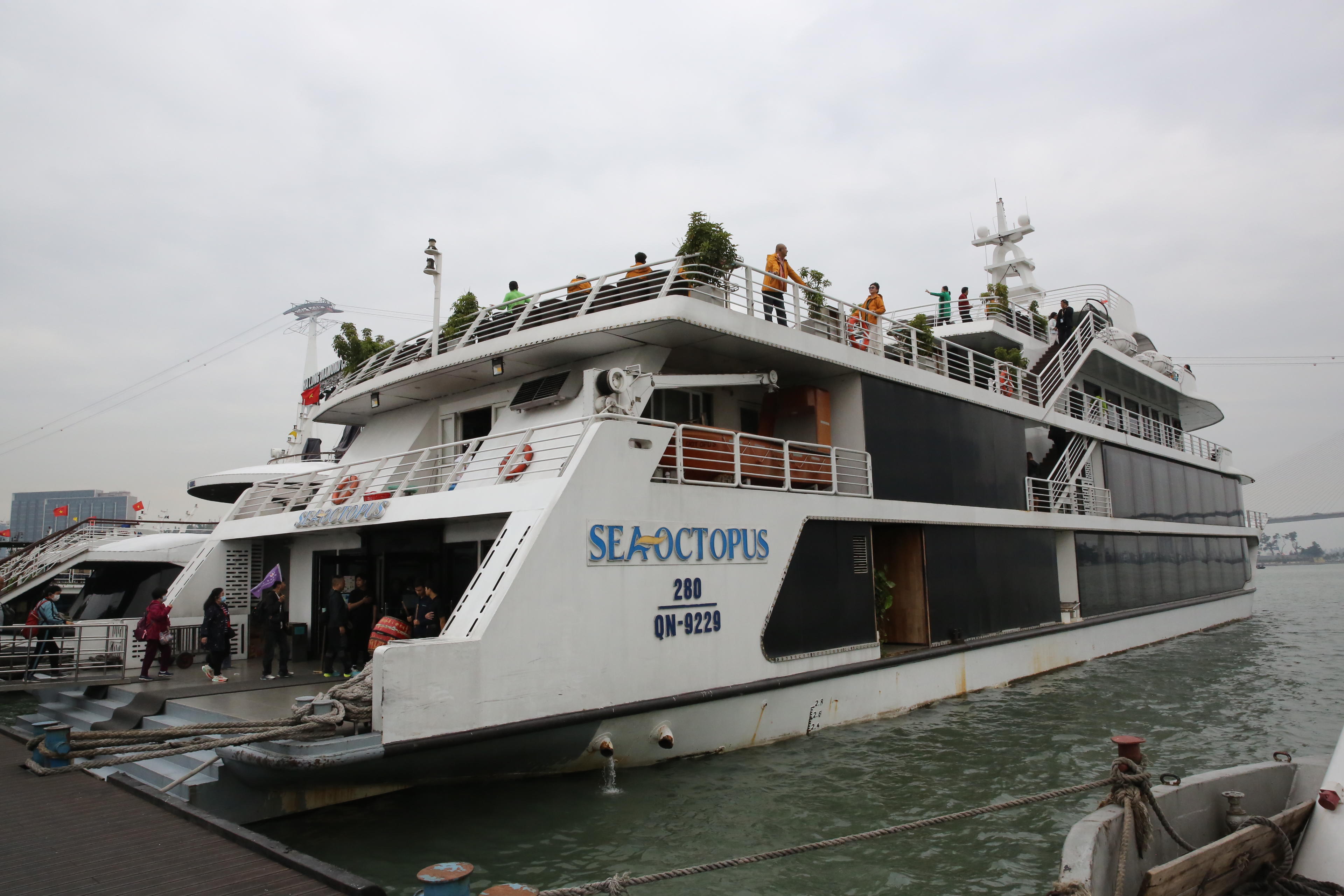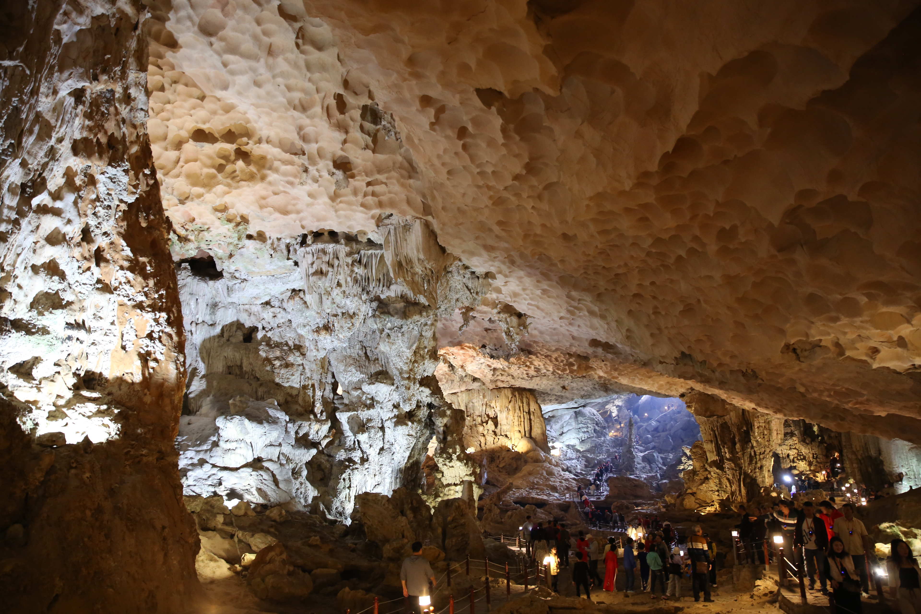 このハロン湾を巡るクルーズには、3時間コース、6時間コース、そしてクルーズ船での宿泊をともなうコースがある。限られた時間でベトナムを回る私は、「ハロン湾を展望する場所に行く」という触れ込みに魅力を感じ、6時間コースを選択した。このコースは3時間コースとは違うルートをたどるものであった。どのガイドブックにも載っている「香炉岩」「闘鶏岩」などの見学は無く、代わりにLuon Cave という、下に穴の開いた崖の下をくぐって自然の猿がいる島に近づいて餌をやったり、ボーホン島というところに上陸してSung Sol Cave(スンソット洞窟)という約10,000㎡のハロン湾最大級の鍾乳洞を巡ったり、Ti Top Irelandという、白砂の海岸と360度の展望ができる島に行くというものであった。