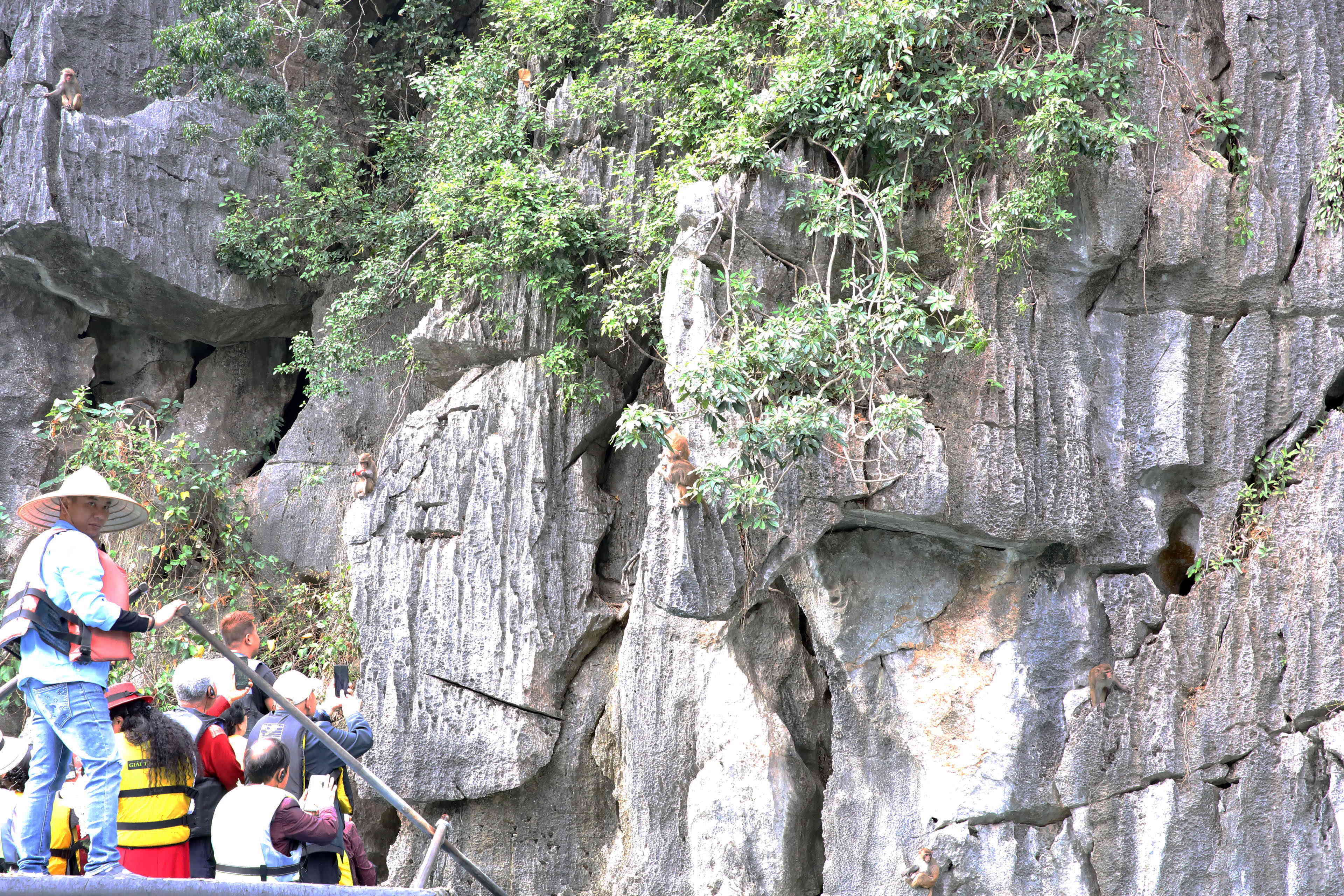 いきなりの個人的事故で、少しショック状態になったが、私におかまいなしに進んだボートは、自然の猿のいる島に近づいた。バナナなど果物を投げると器用にキャッチし、届かず海に落ちたバナナなどは枝に腕を伸ばして掴まり、もう一方の手を海に伸ばして取る。かなり人に慣れているようだった。その後、周りを岩に囲まれた穏やかなところでボートは止まって、お客に周りの景色を見学させた。私はこの景色を見ると痛かった頭を思い出す。