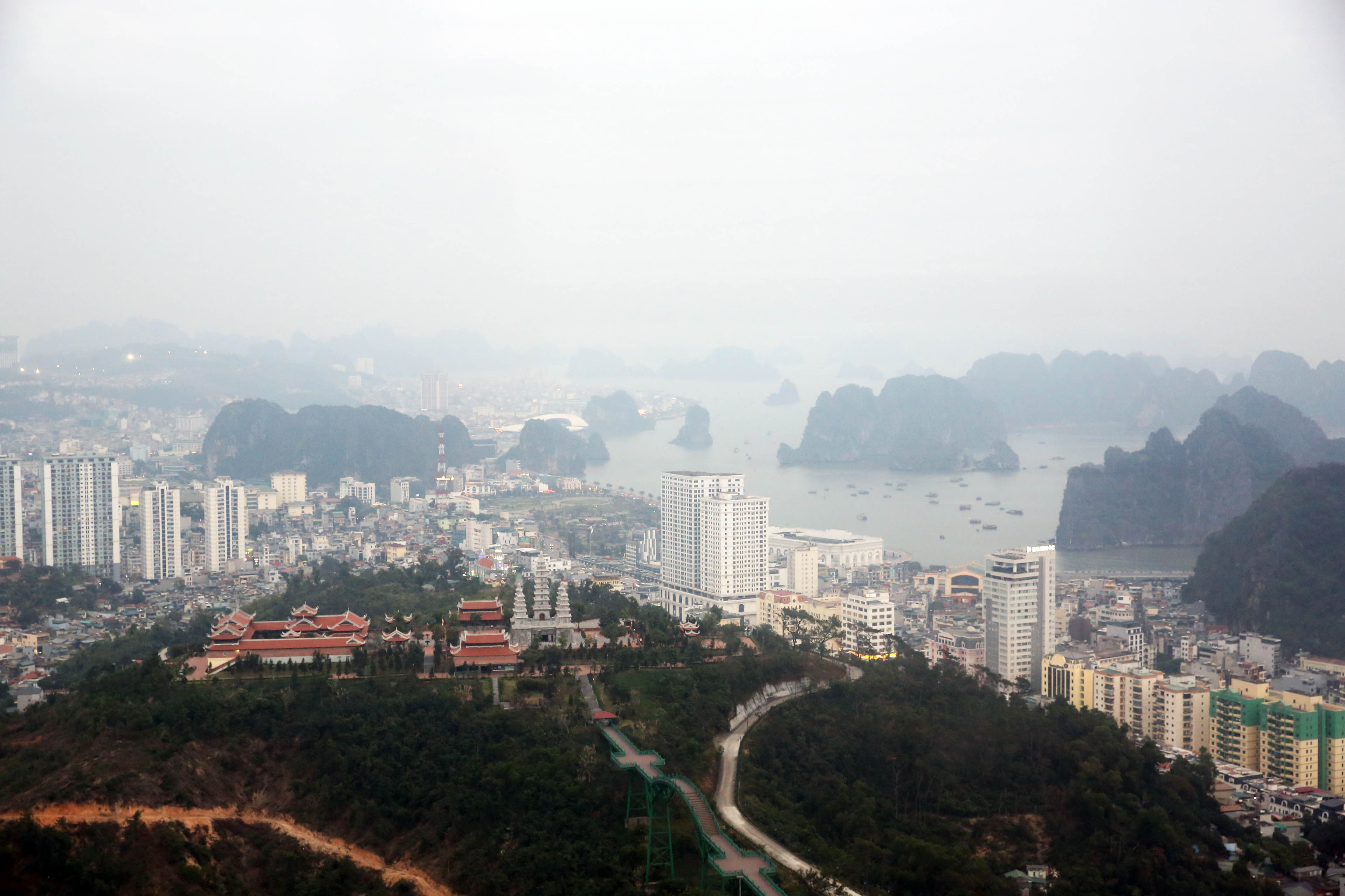 16:00、クルーズは終わり、下船してから、ケーブルカーに乗って観覧車へと乗り継いだ。ただ、かなりここも人気スポットのようで、待ち時間が長く、観覧車で最高部に来た頃には、日もかなり暮れて、おまけに霧?まで出てきて、眺めはいまいちだった。ハロン湾よりも、上から眺めて分かったハロン市のタワマンなどマンション建設ラッシュを目にしたことの方が印象に残った。