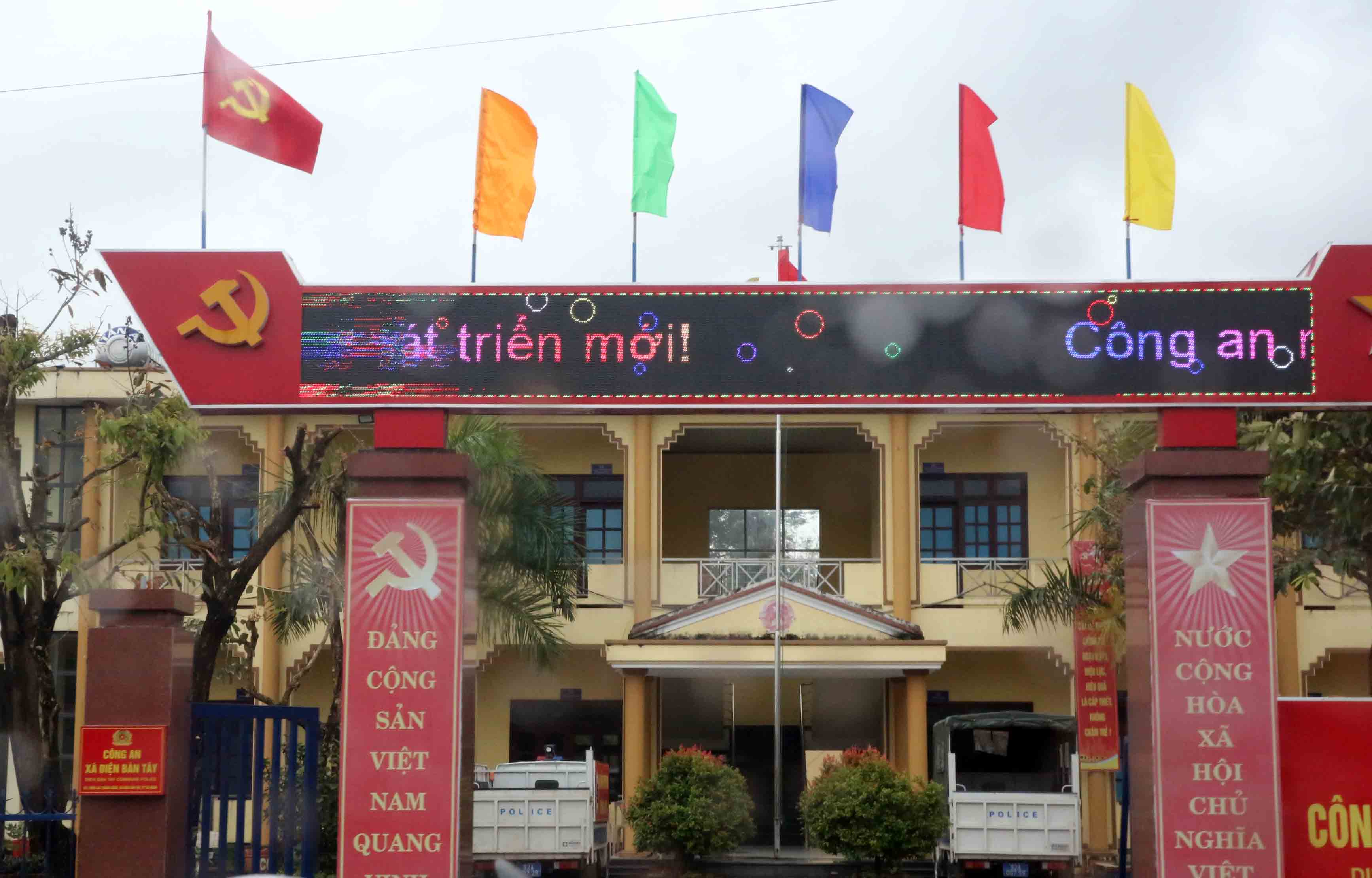 官公庁、ベトナム共産党の宣伝板も含む公共施設などに、縦長の無地だが、色々な単色の色旗を並べている風景をよく見た。
