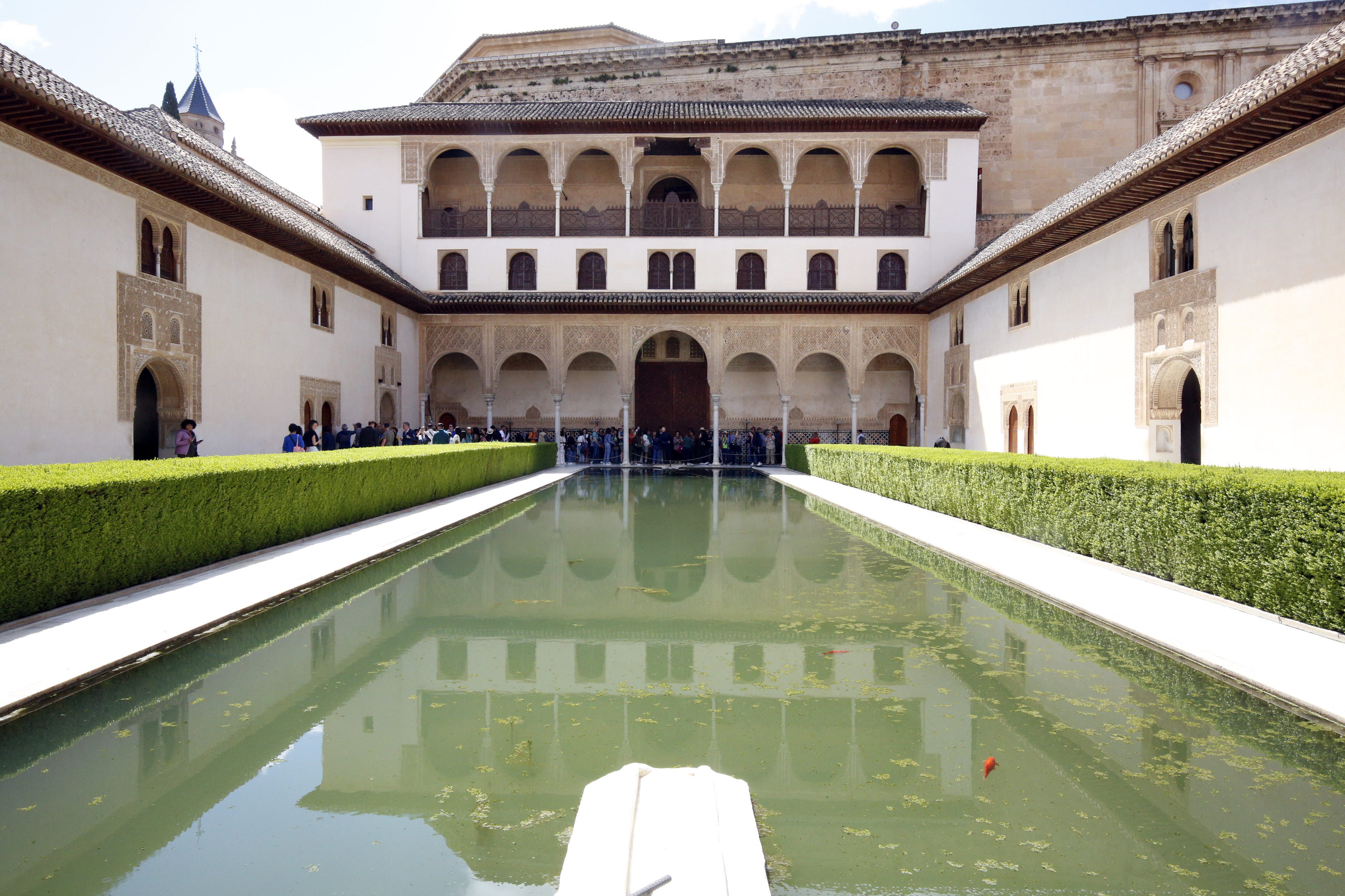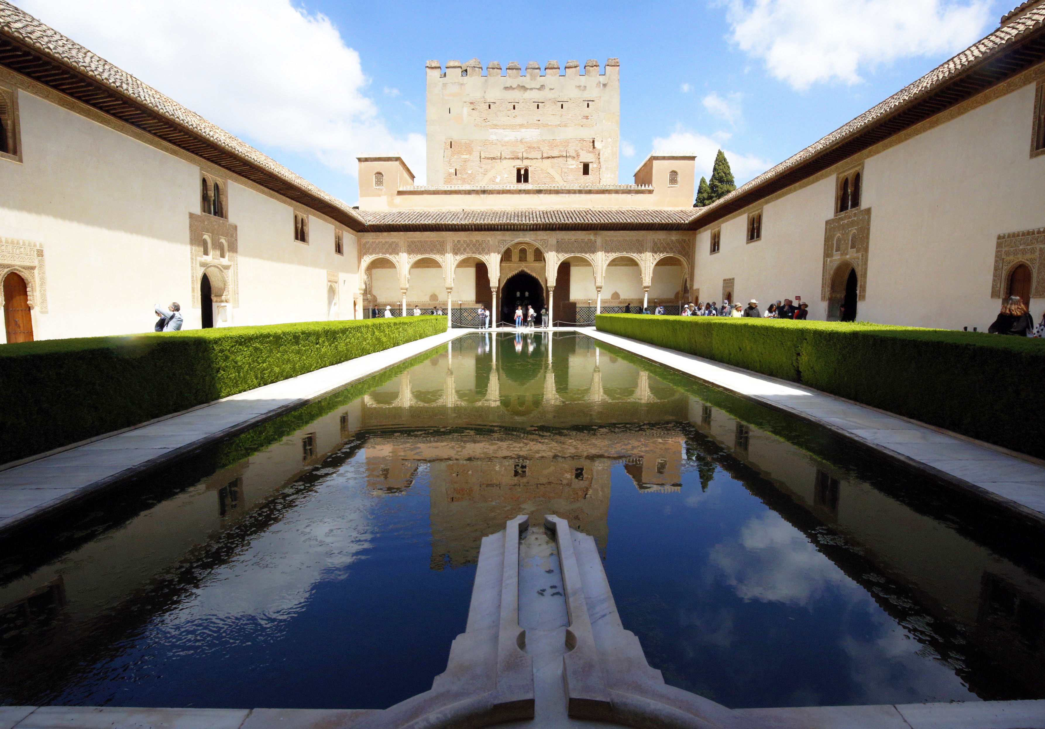 東西両側の建物は、女性たちの住居だと言われる(サイト「AlhambraDeGranada.org アラヤネスの中庭」日本語訳より)。