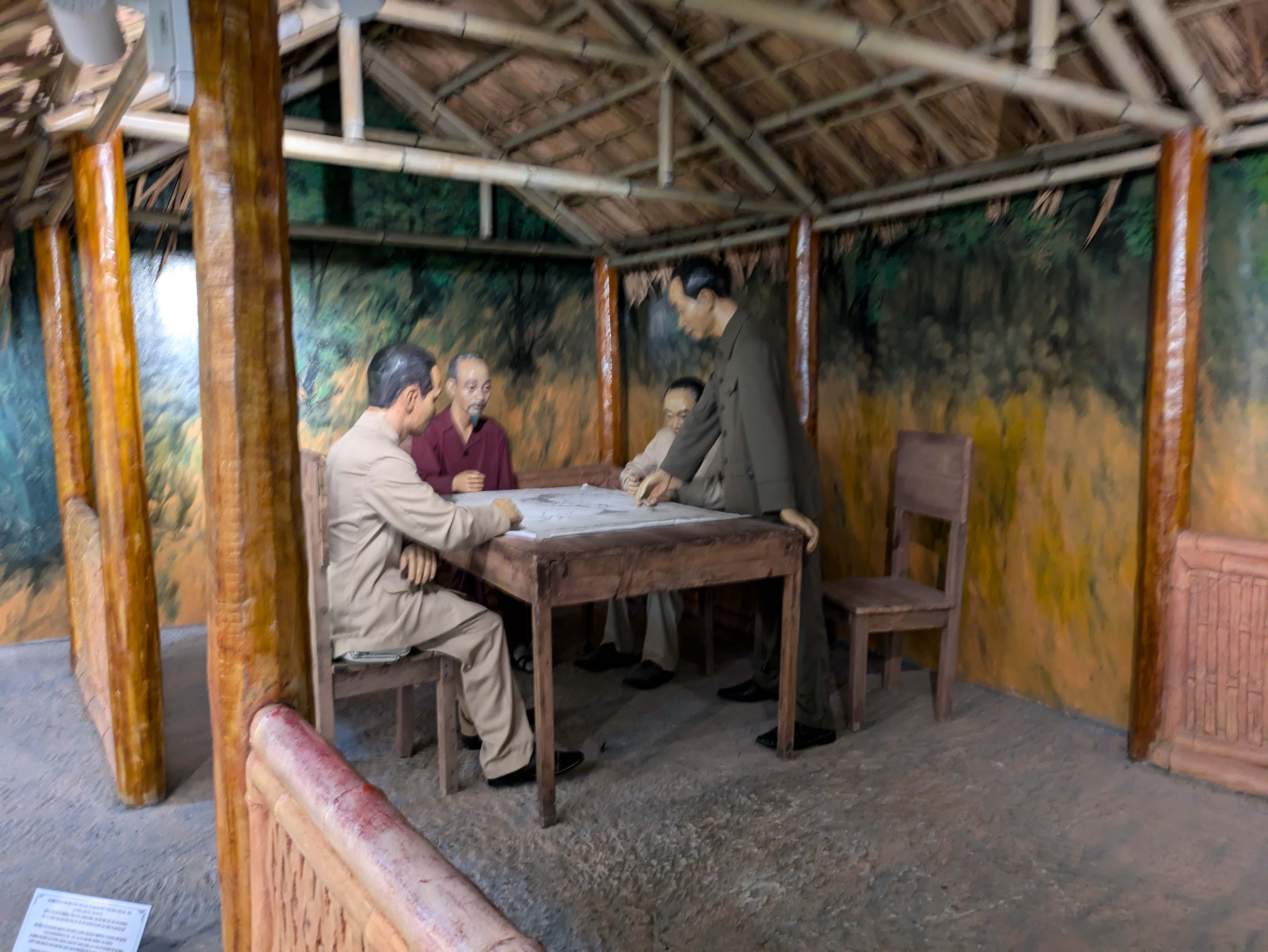 人形で再現した、ホーチミン、ボーグエンザップらの作戦会議(現地の歴史戦勝博物館の展示)