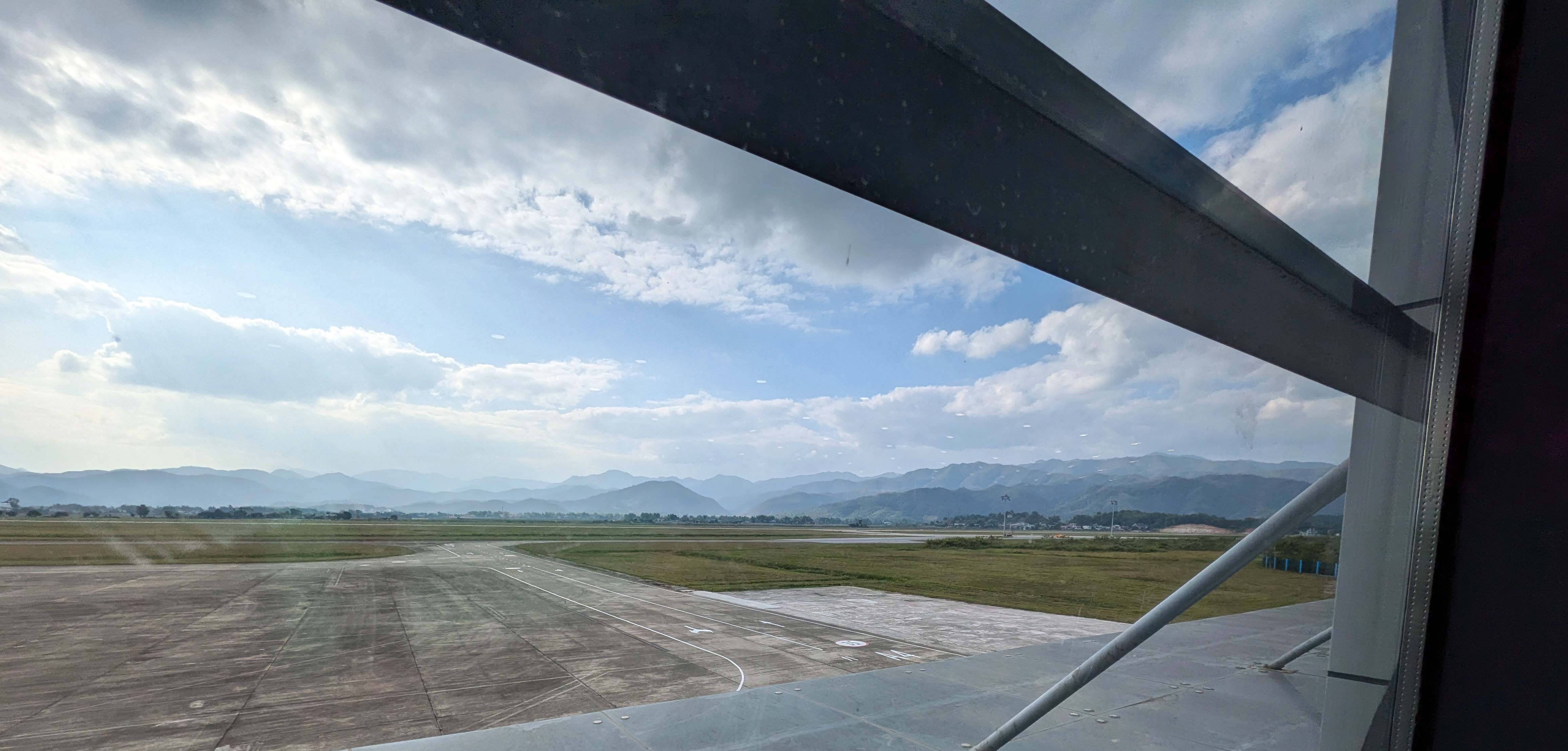 ディエンビエンフー空港から見た周りの山並みと盆地