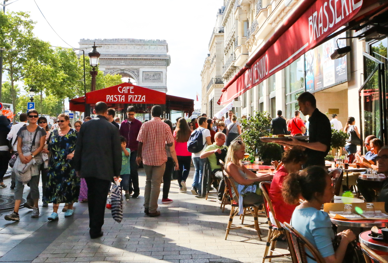 パリと言えば、メインストリート、シャンゼリゼ。ここにあるオープンカフェはいかにもステレオタイプの「パリらしさ」。