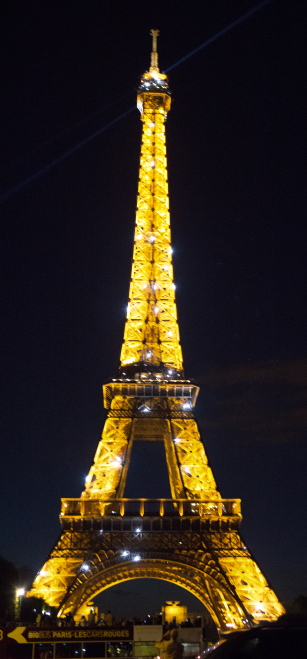 パリのシンボル、エッフェル塔は、少なくとも夜の10時、11時、12時には「シャンパン・フラッシュ」を見せてくれる。塔の各所に付けられたたくさんの球状の白いライトが不規則に(そう見えるだけ?)シャンパンの泡のように次々現れ点滅するものである。私が見た時は5分間にわたってなされた。この時刻が近付くと、近辺に多くの人が集まり、パリの夜景見物ツアーのバスなども続々とやって来る。なお、この夜景には考えたアーティストに著作権が認められており、商業目的で画像などを使用する場合は許可が必要である。