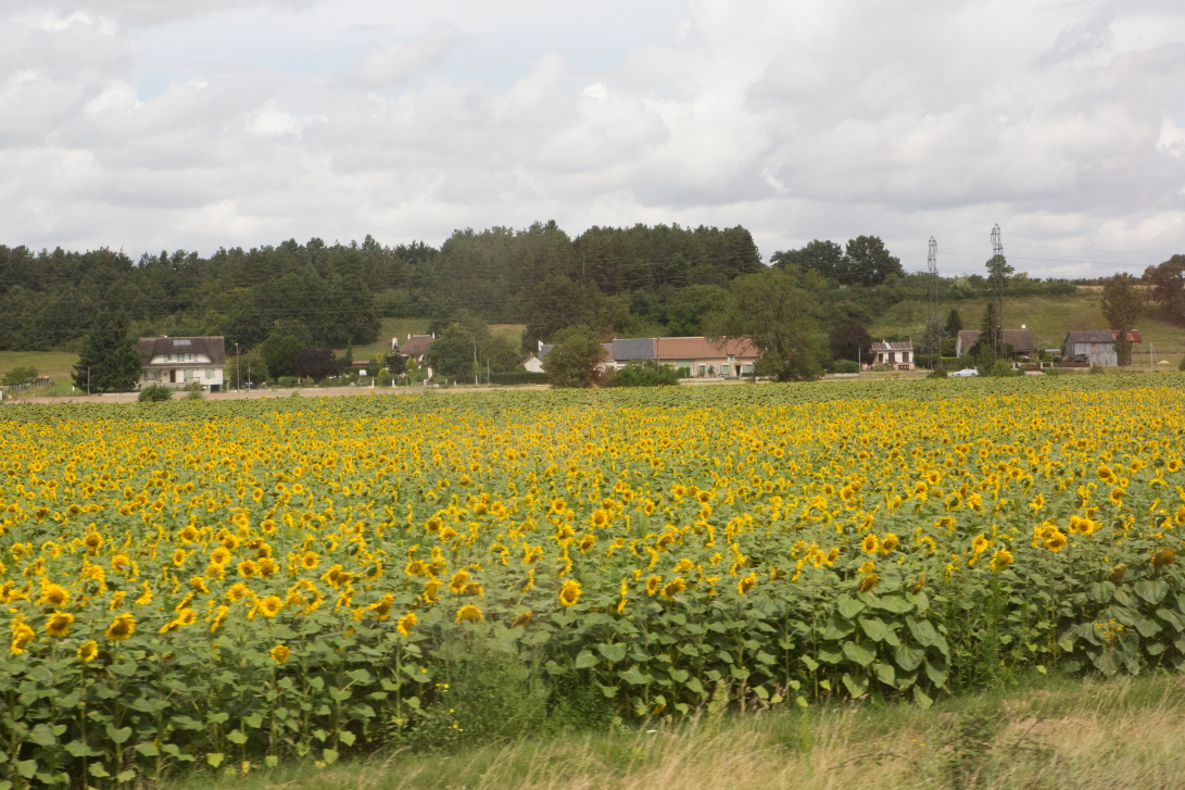 ところどころにひまわり畑がある