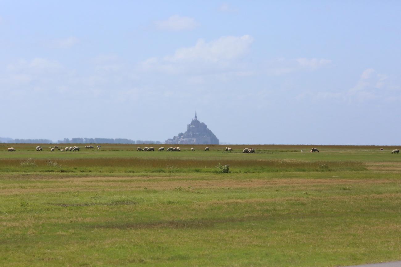 ノルマンジー地方の牧場では、牛や羊が飼われている。