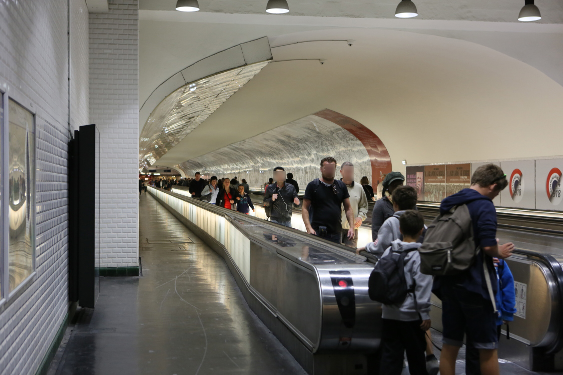 モンパルナス地下鉄駅は、乗り換えに相当歩く駅の一つ。「動く歩道」まである。