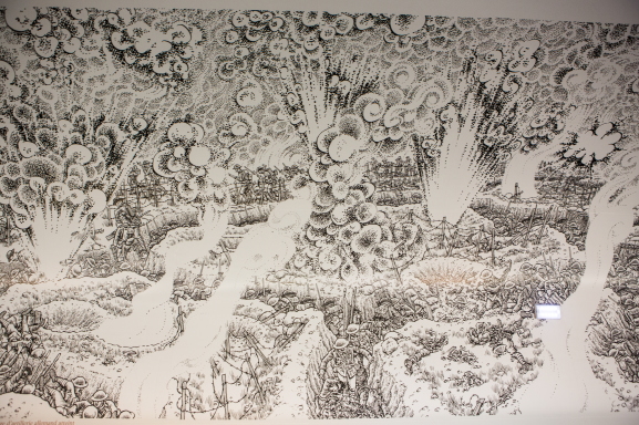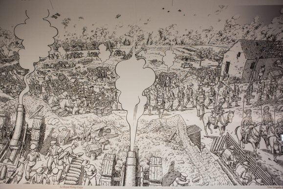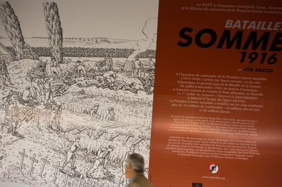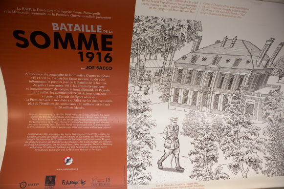 2014年8月、地下鉄モンパルナス駅の、「動く歩道」の壁には、第一次世界大戦100年のため、1916年フランスのソンムで行われた大戦中最大の激戦(英仏連合軍死者不明者計約14万6000人。独軍死者不明者計約16万4000人)を描いた絵が数十メートル掲げられていた。