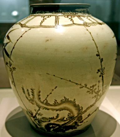 朝鮮王朝になると、まず高麗時代の青磁と同じ技法のものが作られ、「粉青沙器(ふんせいさき)」と後に言われた。