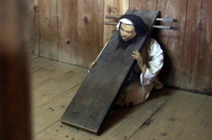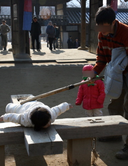 牢獄の中には、首枷をさせられた囚人や、女性の囚人の等身大の人形が置かれていた。ガイドの話では、韓国人なら誰でも知っている「春香」だという。彼女は妓生(キーセン)で、身分の高い両班の男性と愛し合うようになるが、彼が都に行ったとき、役人に言い寄られ、拒んだため獄に繋がれ死刑予定とさたが、最後は恋人に助けられた。人形のそばに日本の「お賽銭」がたくさんおかれていたのが愉快だった。