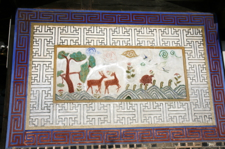 台所と建物の壁に描かれていた松と鹿の絵。これはもともと描かれていたものなのか、あるいは時代劇の撮影が行われていたのでそのためにセットとして描かれたものか? わからない。どちらにしても両班の屋敷には華やかなおめでたい絵があった。