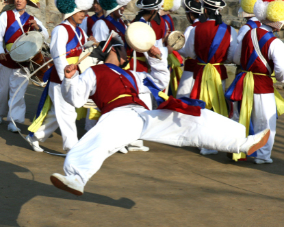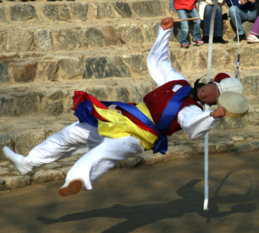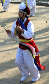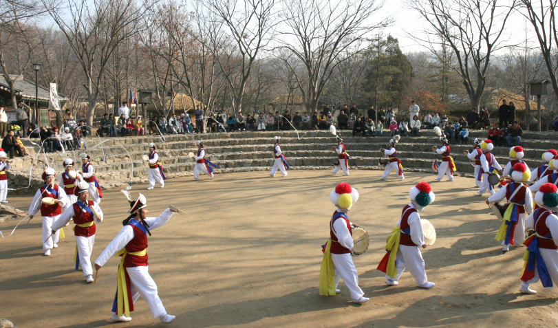 民俗村の公演場で毎日行われているものを見学した。全羅道湖南地方のもので、豊作を祈願するためのものだとのこと。