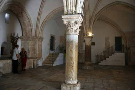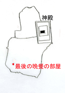 この「最後の晩餐」については、有名なレオナルド・ダ・ヴィンチの絵があるが、当時の人々はテーブルで食事をするのではなく、床に寝そべりながら食事をしていたので、残念ながらあの絵は実際のものとは違うという。現在、エルサレム市内の南西部に、この「最後の晩餐」の行われたという部屋がある。伝承のあったところに12〜13世紀にエルサレムを占領した十字軍が堅固な建物と部屋を作ったという。 当時のエルサレム