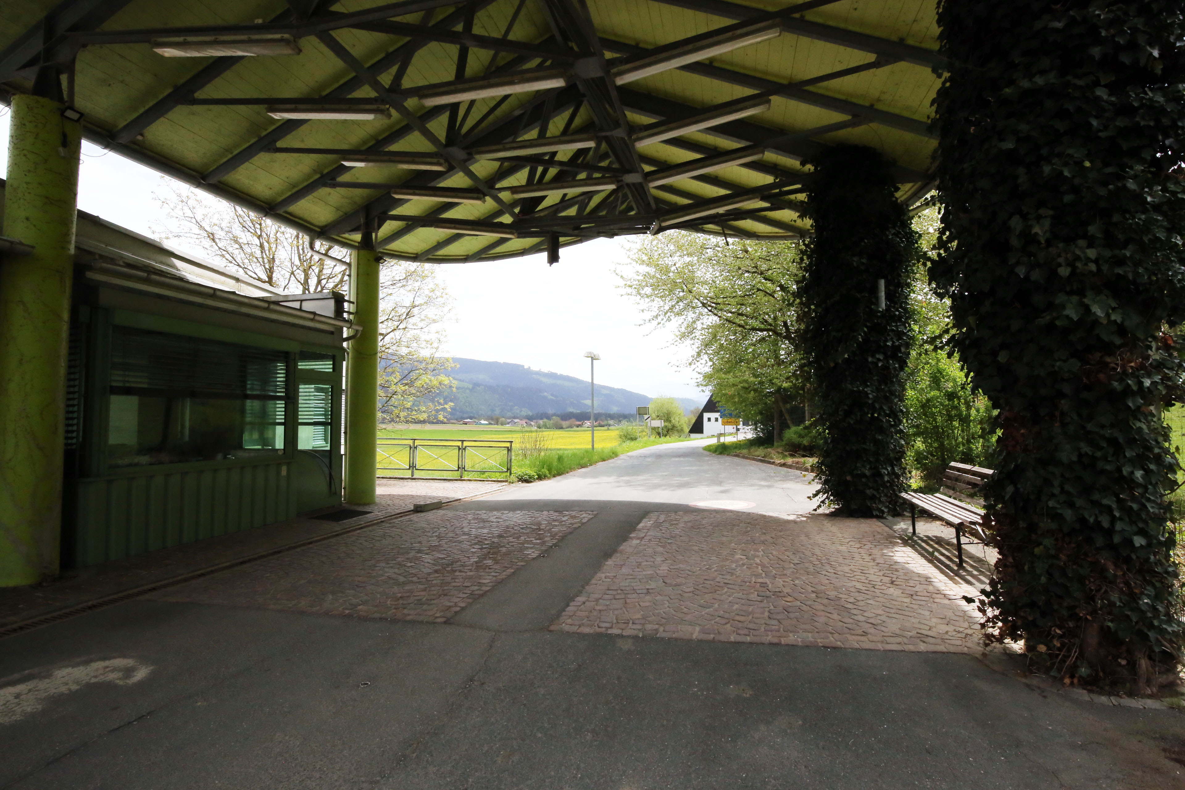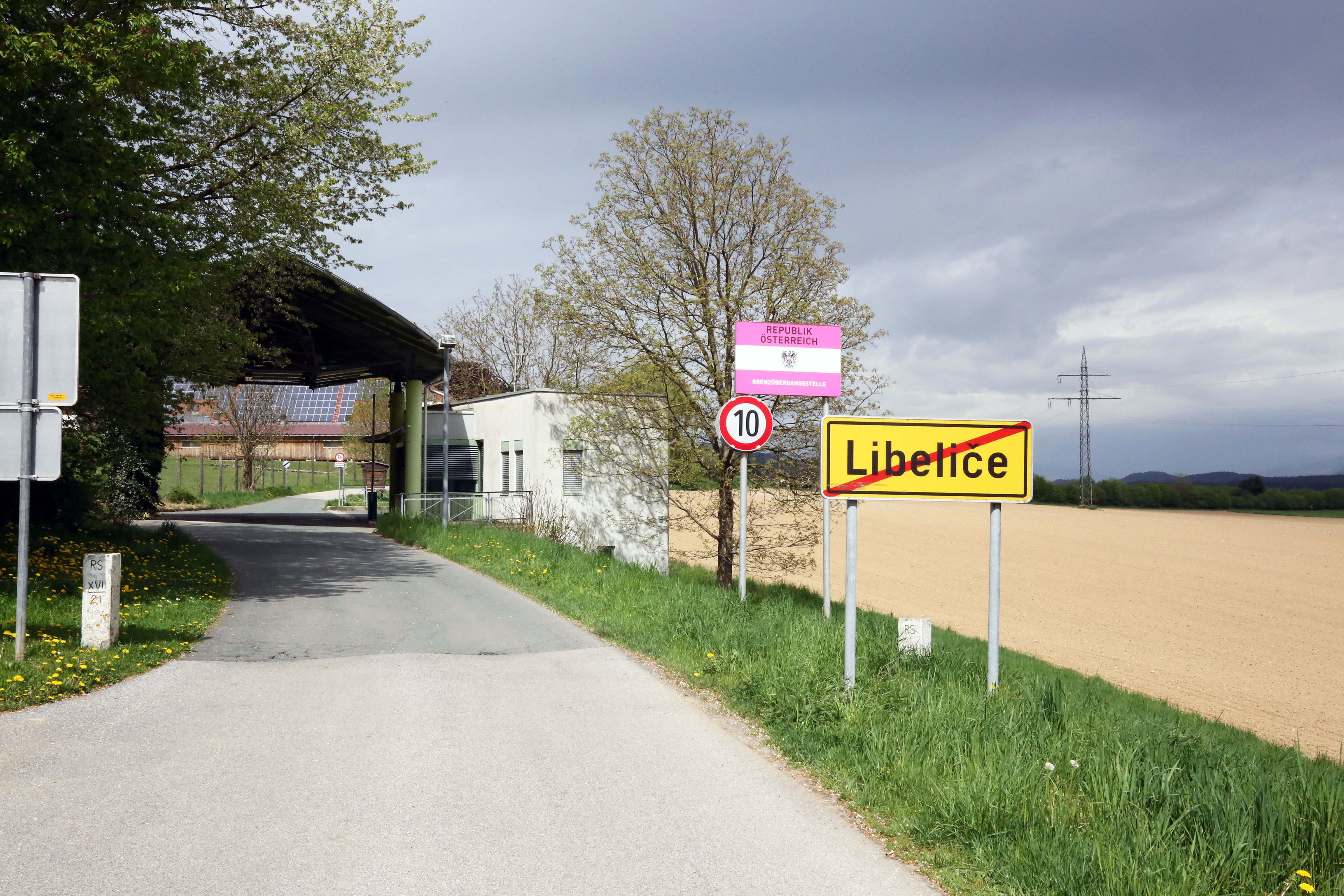 (左)リベリチェからオーストリアとの国境にあった建物を見る。 (右)オーストリア側からリベリチェを見る。。