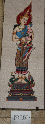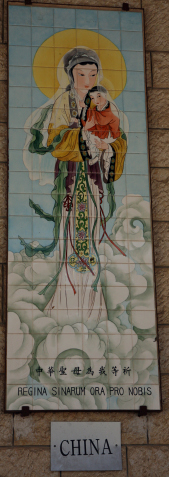 左から観音像のような中国のマリア像、伝統衣装のタイとインドネシアのマリア像