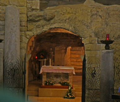 ナザレの聖ヨセフ教会(ヨセフの家の跡)のすぐ隣に、婚約者マリアの家(洞窟)がある。現在そこは「受胎告知教会」となっている。