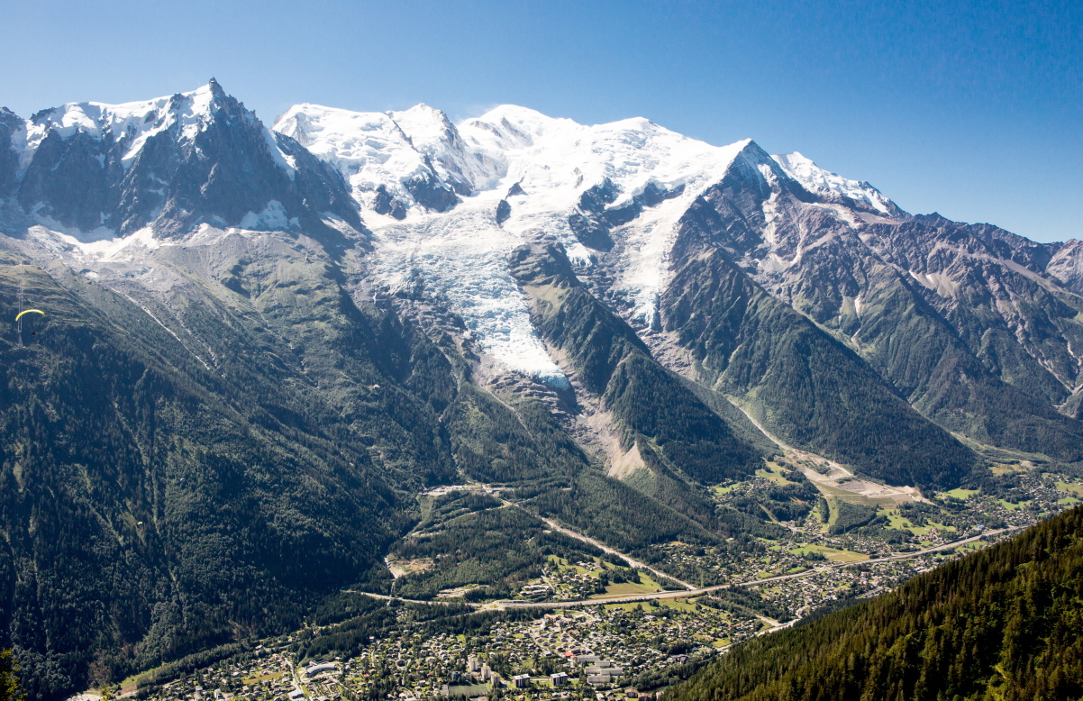 「白い山」の意味のモンブラン。ヨーロッパ最高峰標高4810m。