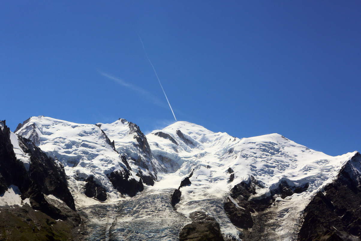 ちょうどモンブラン上空を通る航空機があったので撮影。