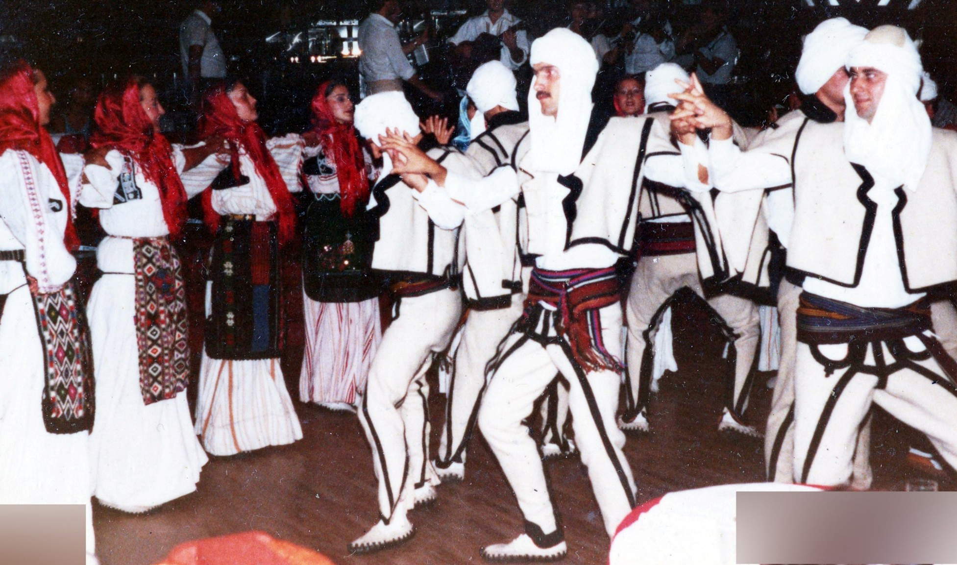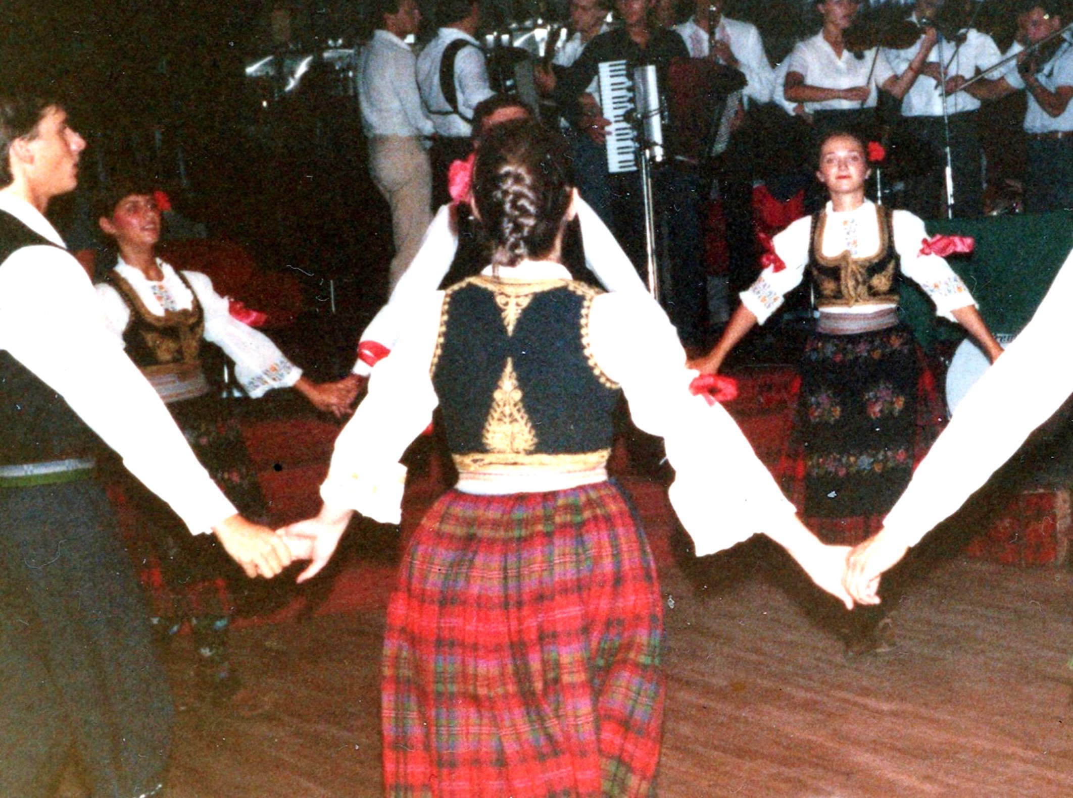 セルビアの民俗衣装の数々  左も右も筆者撮影。特に右の写真は1982年8月にサラエボのあるホテルでの民俗舞踊ショー見学の時のもの