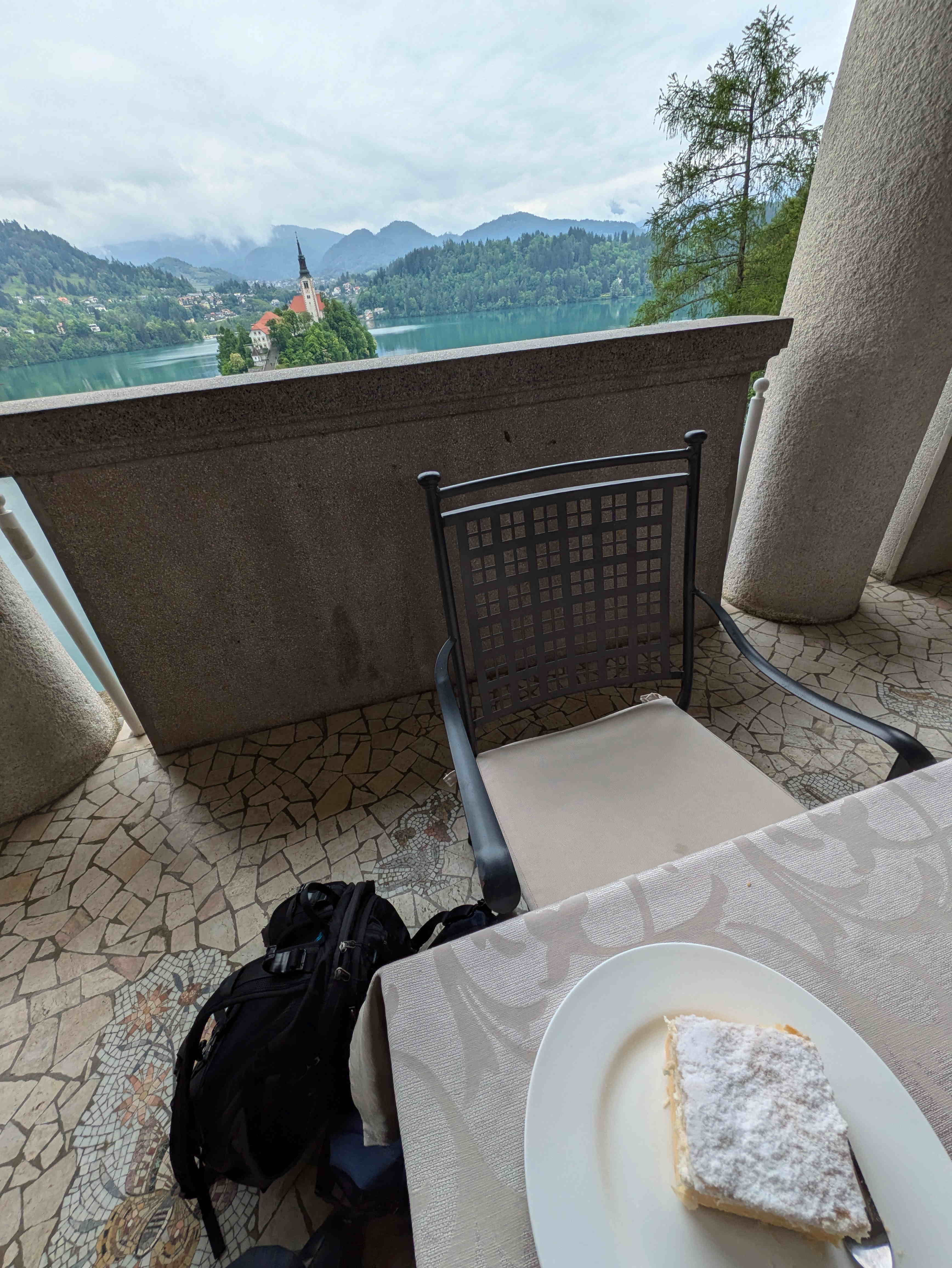 ホテルの敷地内には、プレチェニクが設計したベルヴェデーレ・パビニオンという高さ30mの柱の上に建てられた、現在はカフェになっている建物がある。ここからはブレッド湖の小島と教会がよく見える。ちょっと値段は高いが、ここのブレッド・ケーキは絶品である。