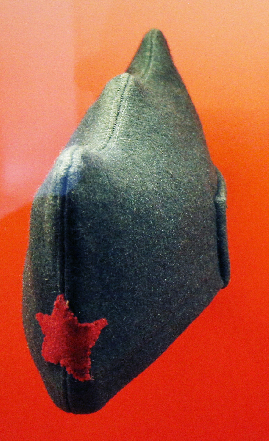 「スロベニアの最初のパルチザンたちは、さまざまな帽子をかぶっていた。スポーツキャップ、ベレー帽、シャイカチェ(旧ユーゴスラビア軍の帽子)などである。当然のことながら、スロベニアの各地域で蜂起を組織した者たちは、統一された帽子を導入しようとした。これにより、・・・パルチザン同士が互いを認識できるようになるはずだった。・・・1942年4月19日、アレシュ・ベブラー、イヴァン・ヤキッチ=イェリン、アンテ・ノヴァクがクロアチアの村グルバイェルの・・・ヨシップ・アブラモヴィッチ=カパの家で、クロアチアのパルチザンと2日間の会合を持ち・・・、スロベニアとクロアチアのパルチザン部隊間の協力計画を立てたとき、彼らはクロアチアのパルチザンから、3つの角にカットされた軍用帽子、いわゆる『パルチザン帽』を受け取った。4月24日には、第3部隊司令部が指令を出し、・・・『パルチザンの制服を徐々に統一することを目的として、パルチザン用帽子Triglavkaトリグラウカを導入する。』 クロアチアの『パルチザン帽』は、※その形状から(※スロベニア最高峰で3つの山頂を持つトリグラウ山に因んで 私注) 『トリグラウカ』と呼ばれ、この経路でスロベニアのパルチザンに伝わった。・・・その見本となったのは、スペイン共和国軍兵士が着用していた帽子だった。この帽子はパルチザン活動が始まって1年以内に、クロアチア、スラヴォニア、ダルマチアに広まり、そこから・・・スロベニアにも伝わったのである。・・・パルチザンの制服の最初の要素であるトリグラウカは、1942年秋にスロベニアのすべてのパルチザン部隊に広まった。①」