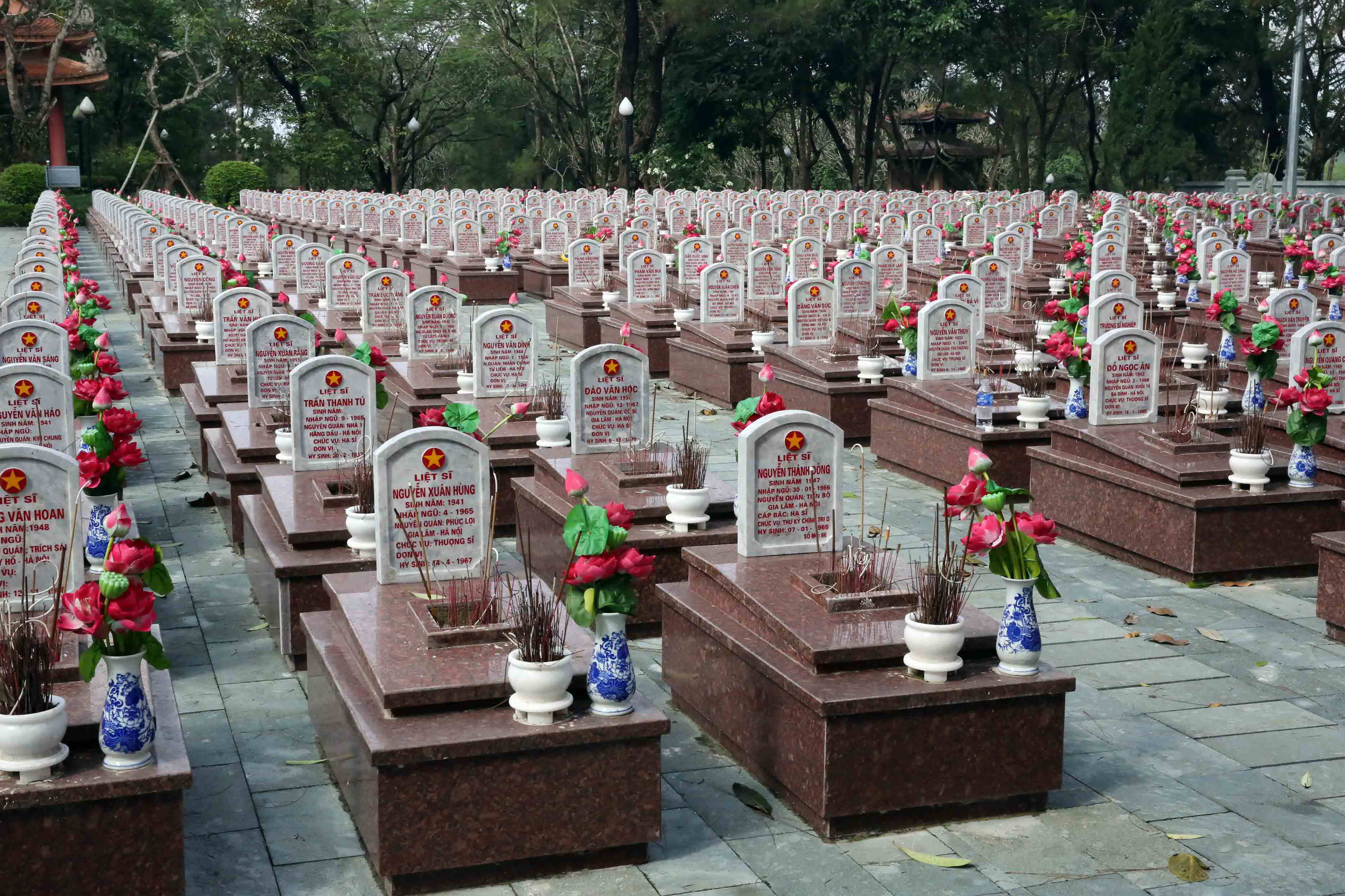 17度線近くの「無名戦士の墓」。爆弾で皆吹き飛ばされた遺体は、誰が誰だか分からない状態だったので、遺体は別の所に埋葬され、これらの墓には遺体が無い、とガイドは言っていた。