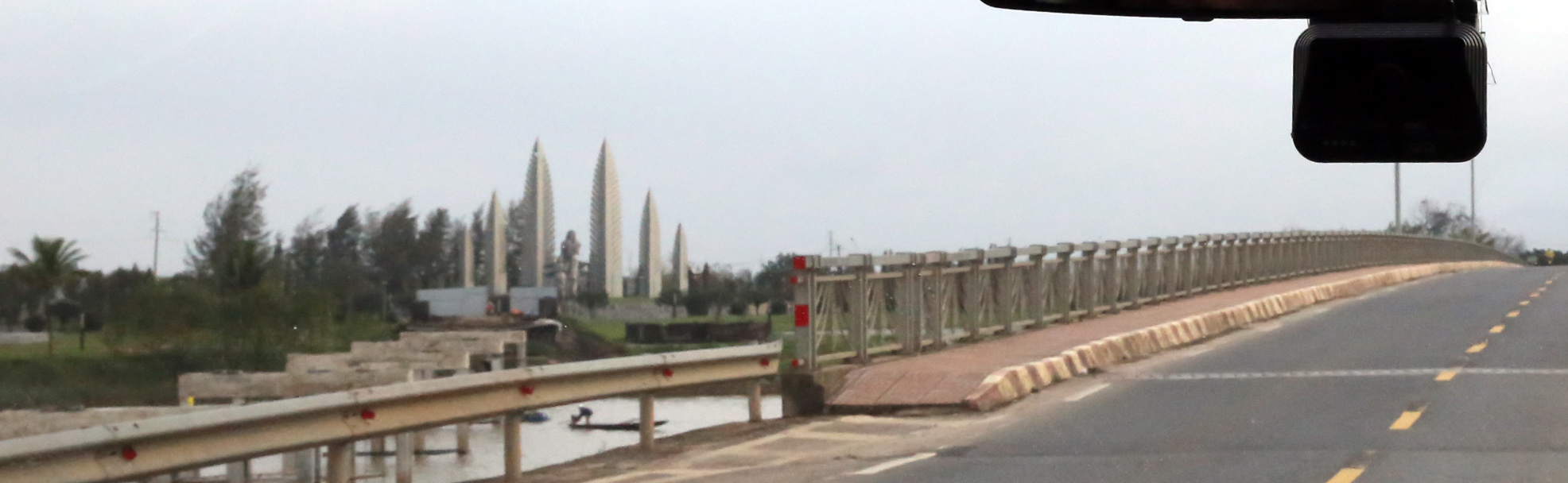 1955年に、南では、それまでバオダイ政権(ベトナム国)の首相を勤めていた、ゴ・ディン・ジエムが、国民投票でバオダイを破って「ベトナム共和国」の大統領となった。17度線は臨時の軍事境界線としてジュネーブ協定で定められていたが、事実上の国境となっていった。結果として、17度線の近くを流れているベンハイ川が、南北分断の川となった。ここにフランスが建築していたヒエンルオン橋というのが架かっていて、南北分断のシンボルとなって、何回もこの後の戦争で破壊されるが、現在は観光用に作り直されている。私が行った2025年は、残念ながら修築工事がなされていてその入口しか見られなかった。興味のある方は私の写真を参考に、GoogleMapsに載っている他の方の撮った写真を探してみてください。