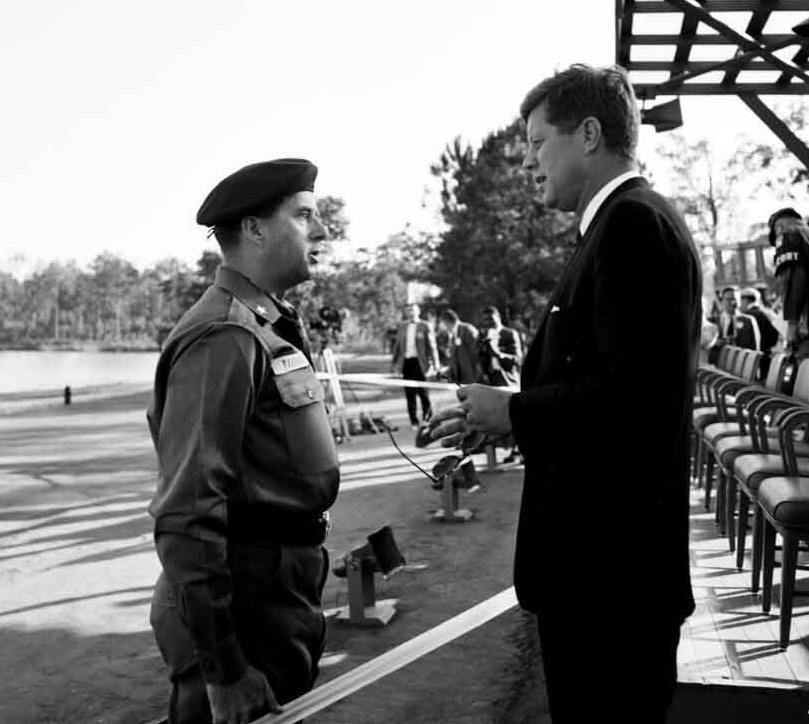 (左)1961年にアメリカ内の特殊部隊基地を訪問したケネディ (右)戦略村 (いずれもパブリックドメイン)