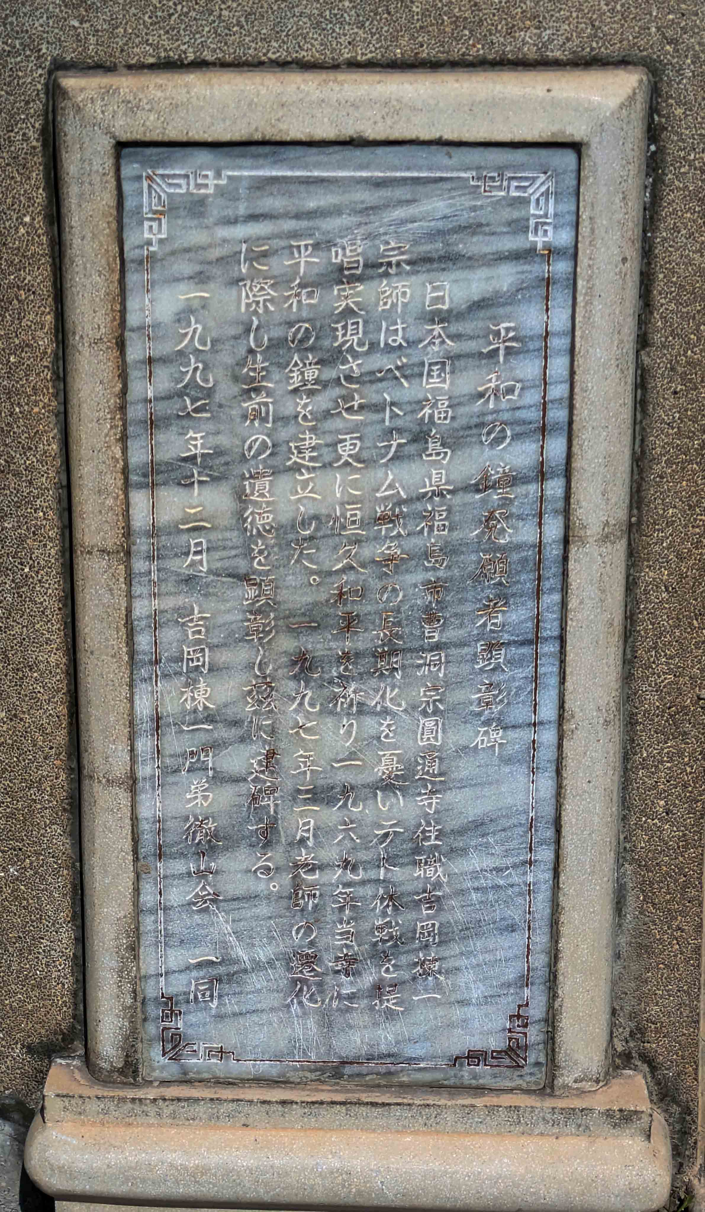 永厳寺には、日本の僧がベトナム戦争の時、平和を願って作った鐘が福島のお寺から寄贈された鐘があった。
