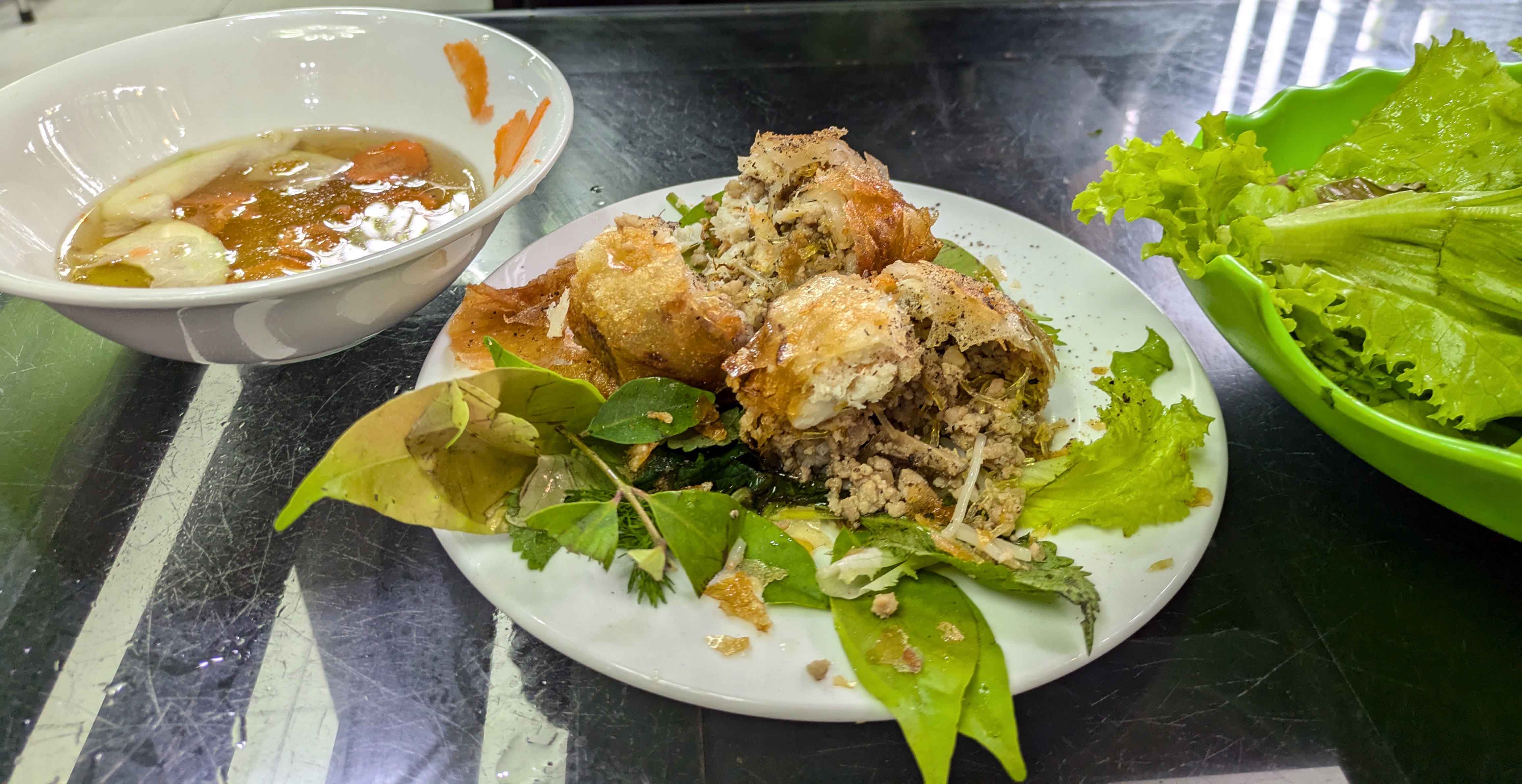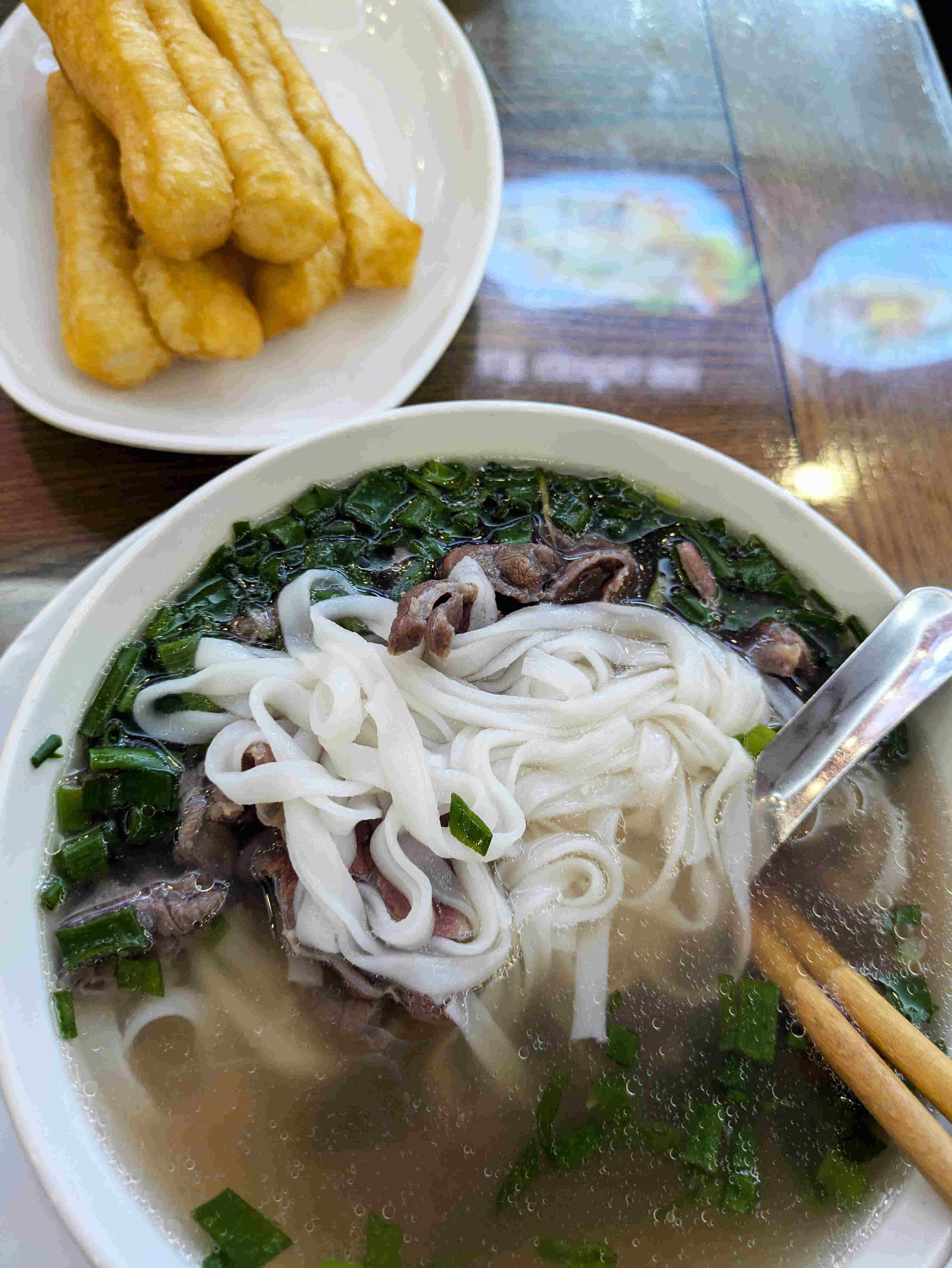 フォー(米粉を水に浸してペースト状にしたものを麺に切ったもの)も日本では生春巻きと同様、ベトナム料理の代表格になっている。2025年12月のハノイでの個人ガイドは「ツアーでは絶対連れて行かない、美味しい店に行こう」と食べさせてくれた。このガイドはかなりのグルメで、ベトナム北部の行程で相当の出費を余儀なくされたが、揚げ春巻き、フォー以外でも彼の推薦する店で食べた料理はほとんど美味しかった。ベトナムの人々も日常食として、柑橘類による酸味、唐辛子による辛味、ヌックマム、甘味噌などで好みの味に整えて食べている。出汁は牛や鶏で取るとのこと。生野菜やハーブを入れたり、中国式の油条(小麦粉にもち米を加えた揚げパン)も浸して食べることが多いとのこと。ただ、これは手で掴んで食べるとべとべとするので要注意。