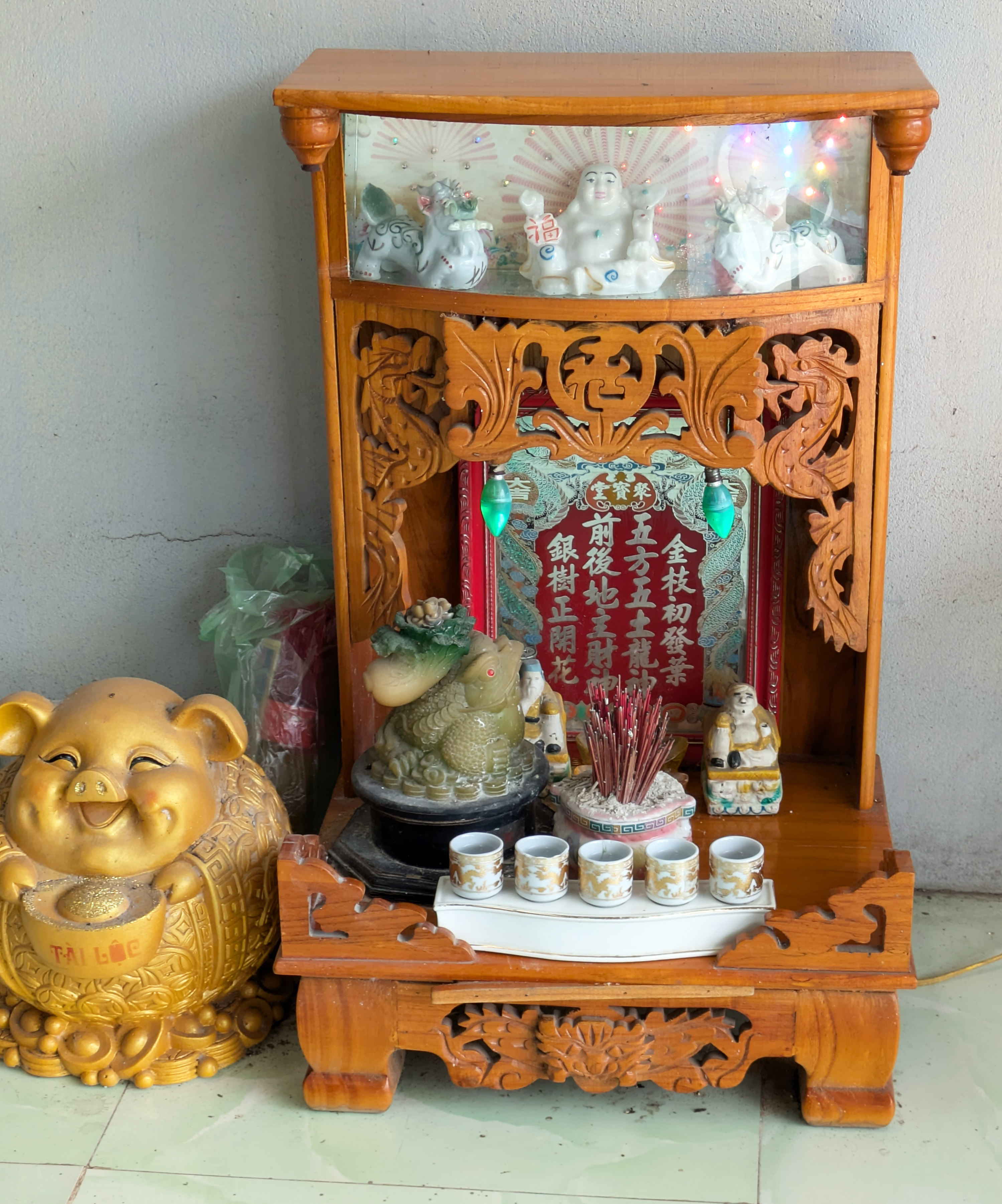 まとめると、これらの祠はタイのものとは内容も異なり、その由来もおそらくベトナム固有の土地神信仰や道教的要素に基づく別系統のものだと考えられる。しかし、家の前に置く小さな祠という外見はタイの祠と似ており、土地神を祀り、家や敷地を守ってもらうという信仰の目的においては、よく似た役割を果たしているように思われる。残念ながら、これらの祠について日本語で体系的に研究した資料は見当たらず、ここで述べた内容はあくまで現地での観察と類推に基づく私の推測である。