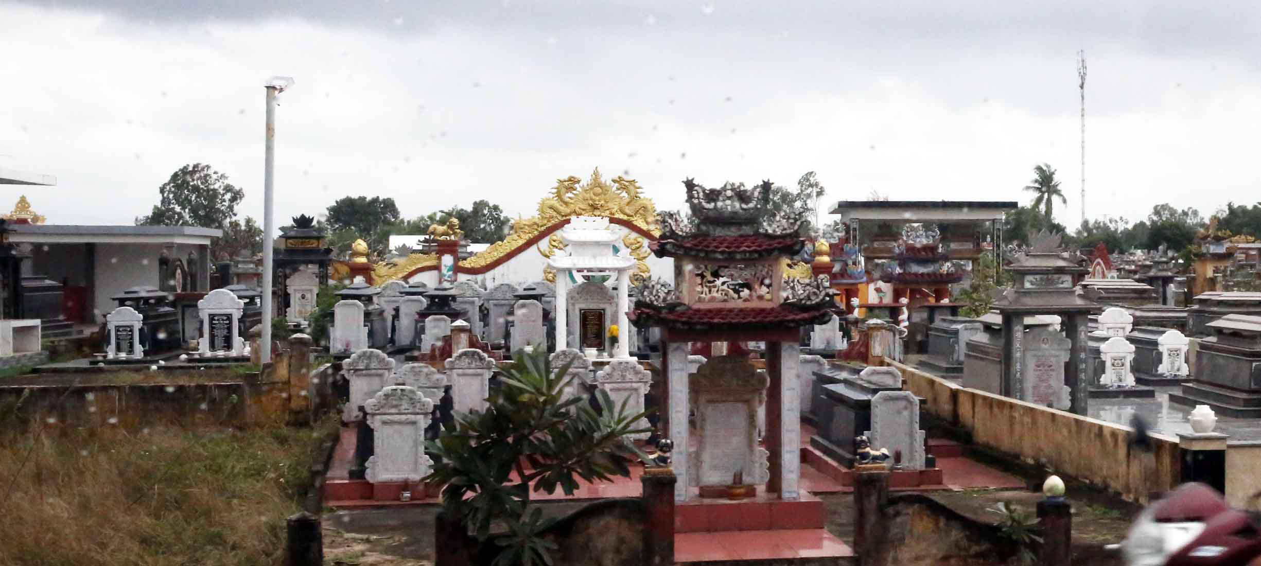 毎日いくつもの墓地や墓を車の中から見ていて、石棺だけ野ざらしのもの、墓標が立っているもの、立派な装飾の「門構え」で多くの墓を囲っているもの、などの区別が見えてきた。いずれも車内から撮った写真のため、手振れや構図が悪いものだということをお断りしておく。またそれぞれの写真のキャプションは私の想像である。