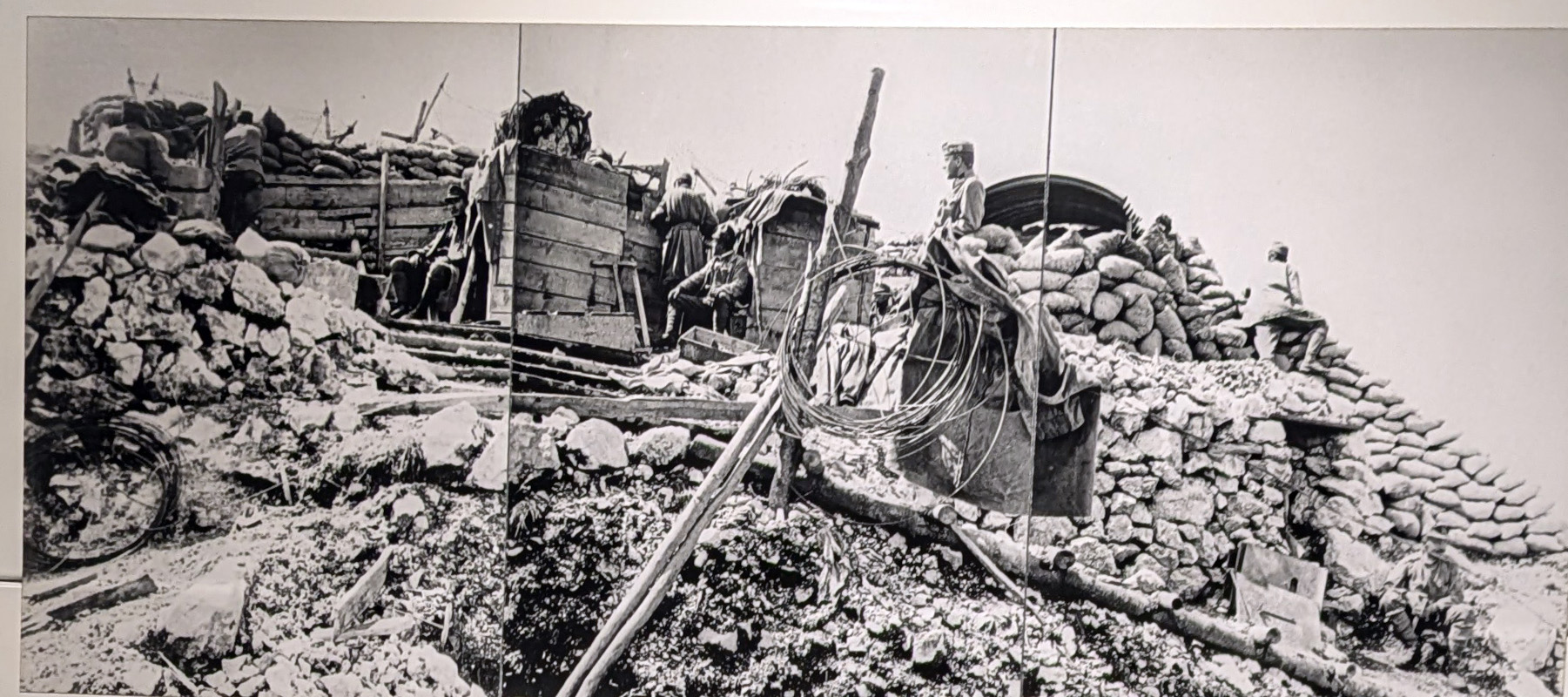 1916年6月23日から、イタリア軍はさらなる占領をもくろんでがオーストリア軍に攻撃を行った(第1次イゾンツォの戦い)が、オーストリア軍はイゾンツオ川沿いの山地に塹壕とその前に鉄条網を張り巡らし、防御に成功し、7月7日に戦いは終わった。これ以降も、イタリア軍はイゾンツォ川を渡って、山上付近のオーストリア軍の塹壕に何回も攻撃を仕掛けた(1916年7月の第2次~1917年9月第11次のイゾンツォの戦い)が、地の利を生かしたオーストリア軍の防御をなかなか突破することは出来ず、一定の成果をあげたものの、イタリア軍も塹壕、バンカーにこもることが多かった。しかし、オーストリアは、戦争全体としてはロシアとの二正面作戦となっていたため、この地域への兵力集中に限界もあり、次第に消耗していった。リュブリャナの近現代史博物館の説明によると、戦場には放置された死体と砲煙の嫌なにおいが充満し、両軍の兵士たちはいつ攻撃されるか分らないという精神的圧迫と、塹壕内の蚤や虱と格闘し、雨水や溜まり水などの不潔な水を飲まざるをえなくなり、コレラやチフスが蔓延し始める、といった劣悪な環境となっていった。塹壕内の敵を攻撃するため、火焔手榴弾なども使わて、両軍に損害が広がった、という。
