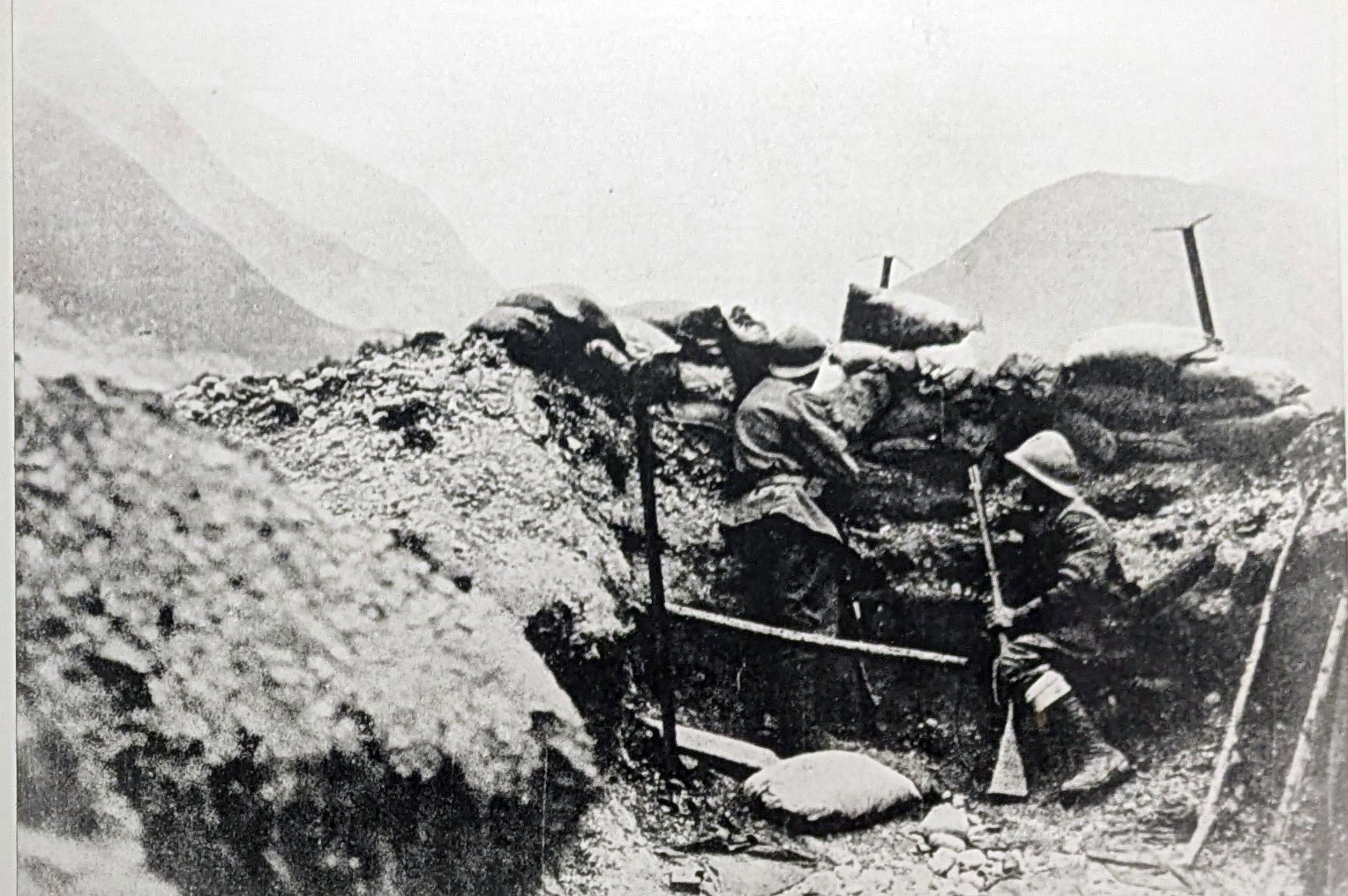1884年にアメリカ人マキシムが機関銃を発明し、1904年の日露戦争で本格的に使われるようになって、それまでの戦争の中心だった歩兵の突撃戦術が使えなくなっていた。第一次大戦は、この機関銃への対処として、両軍勢力とも長い塹壕を掘ったり、屋根付きのバンカーを作って、土嚢や鉄条網で防御をし、その中に昼は待機し、主に夜に作戦を実行した。さらに、ライフルの精度も向上し、数百メートル先の敵も正確に狙えるようになったこと、大砲の精度も上がったことなども、広い場所での突撃戦術を使えないようにしていた。イゾンツァ川沿いの山々に、イタリア軍とオーストリア・スロヴェニア軍はそれぞれ塹壕、バンカーを作って戦った。