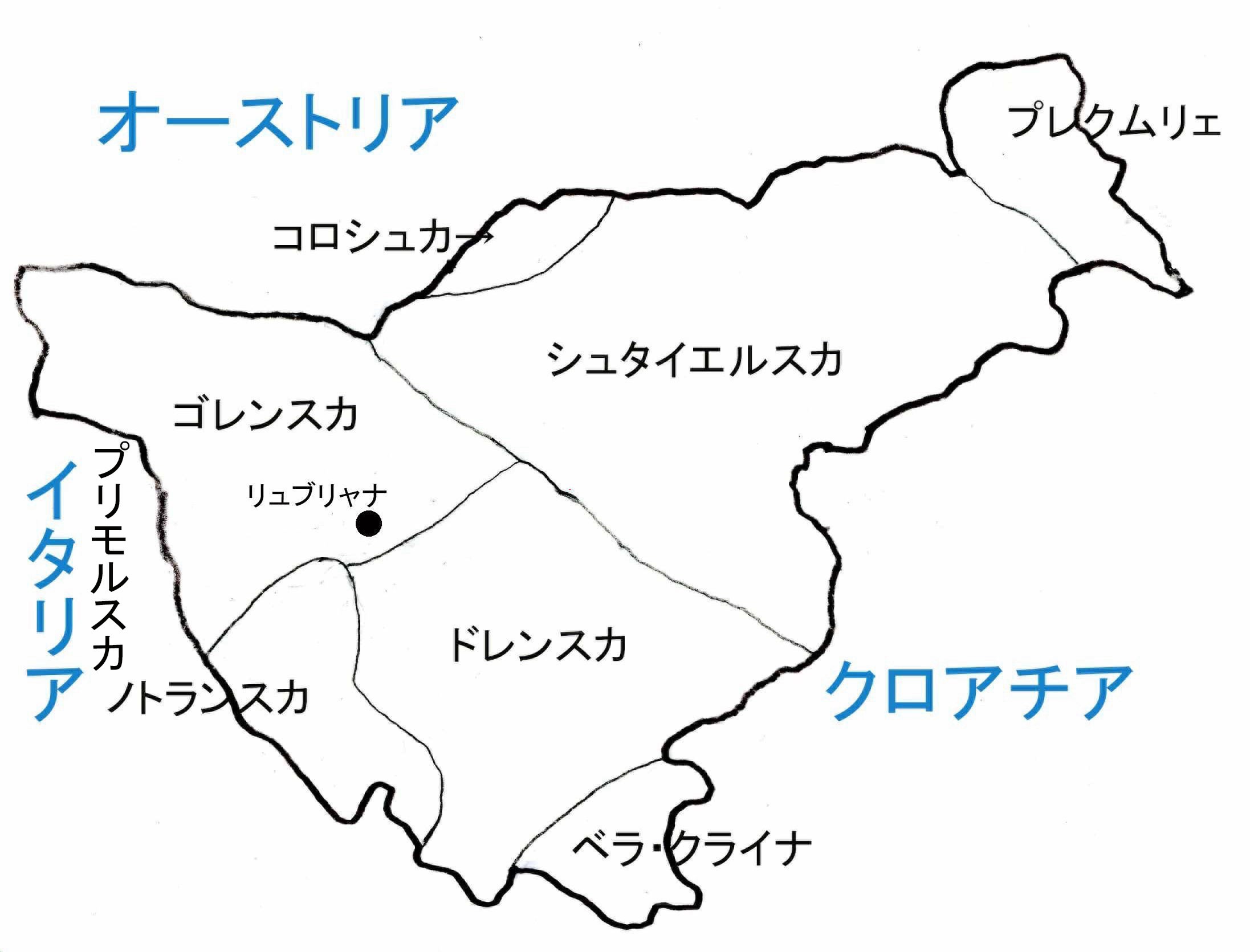 (『Narodnooslobodilački rat u Sloveniji 1941–1945』p.253の図を参考に主要地点とルートを簡略化、カラー化して再構成)