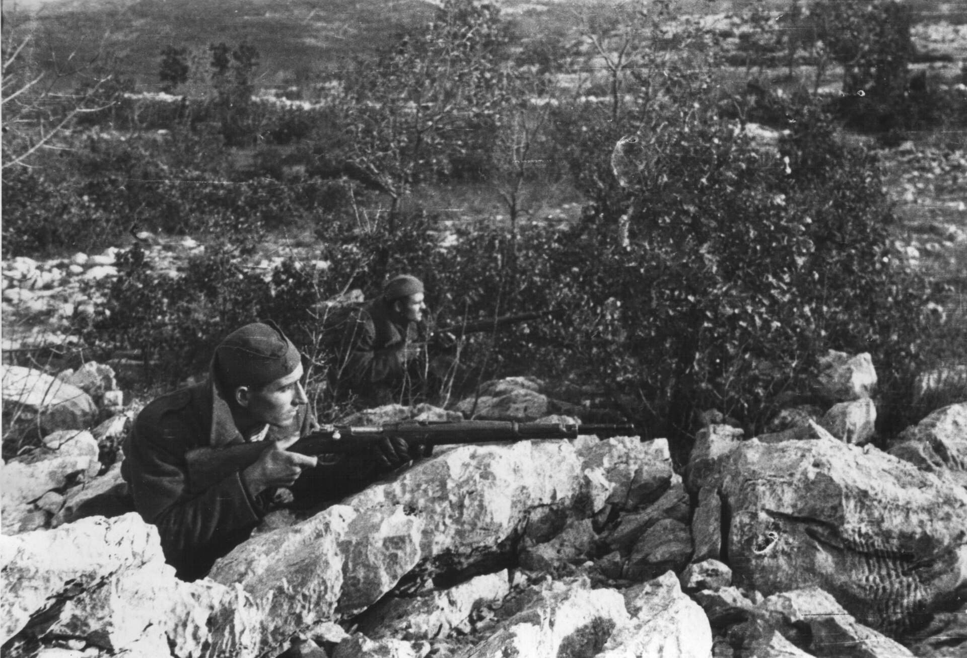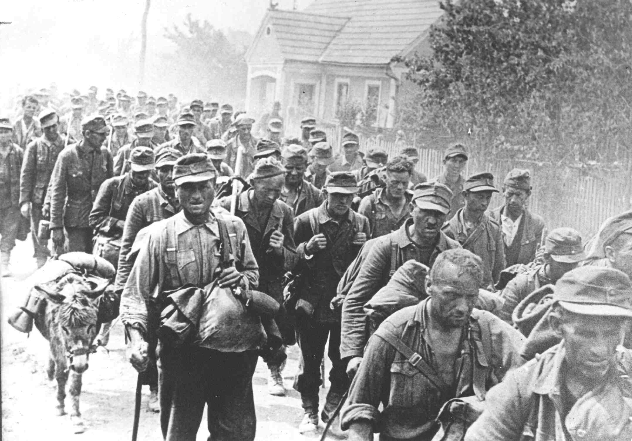 (左)イリルスカ・ビストリツァで捕虜になったドイツ軍の兵士たち (右)リュブリャナに入場したユーゴスラビア第4軍 (ともにパブリックドメイン)