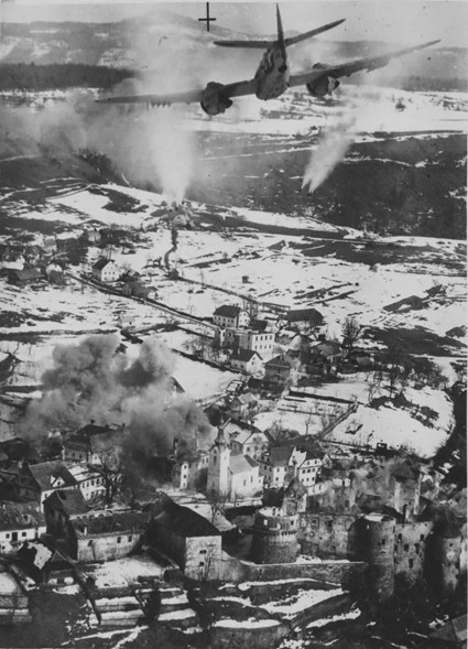 右が「国防軍」(ドモブラン)がたてこもったジュジェンベルク城。城は11世紀以前に建てられ、貴族の館であった(市のサイトより)。