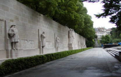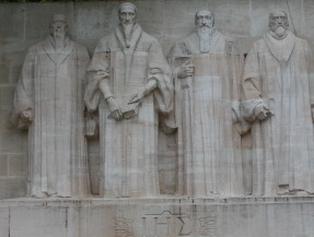 ジュネーブ大学近くの公園に「宗教改革記念碑」があり、カルヴァンなどがレリーフとなっている。4人のうち左から2番目がカルヴァン。