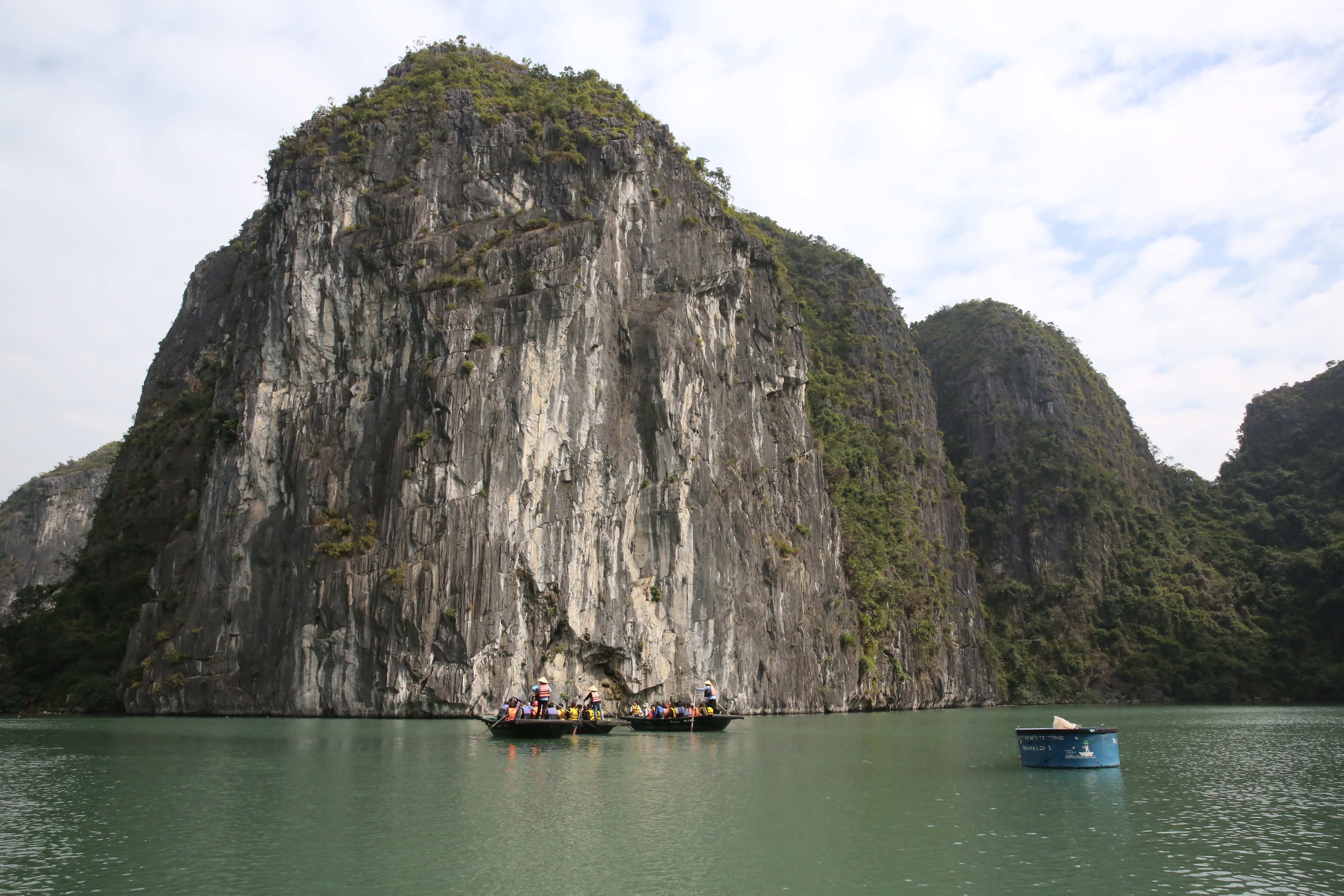 このハロン湾を巡るクルーズには、3時間コース、6時間コース、そしてクルーズ船での宿泊をともなうコースがある。限られた時間でベトナムを回る私は、「ハロン湾を展望する場所に行く」という触れ込みに魅力を感じ、6時間コースを選択した。このコースは3時間コースとは違うルートをたどるものであった。どのガイドブックにも載っている「香炉岩」「闘鶏岩」などの見学は無く、代わりにLuon Cave という、下に穴の開いた崖の下をくぐって自然の猿がいる島に近づいて餌をやったり、ボーホン島というところに上陸してSung Sol Cave(スンソット洞窟)という約10,000㎡のハロン湾最大級の鍾乳洞を巡ったり、Ti Top Irelandという、白砂の海岸と360度の展望ができる島に行くというものであった。