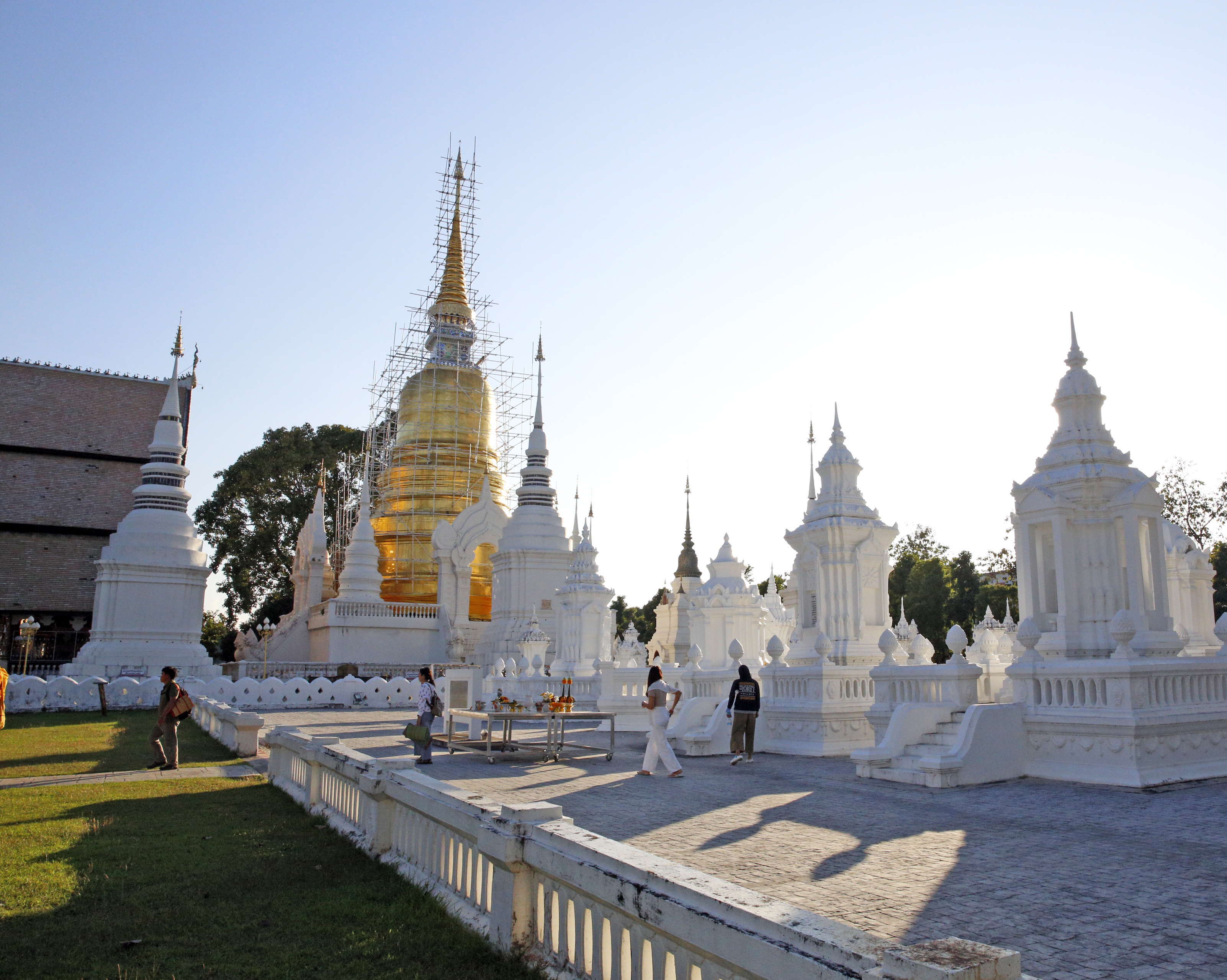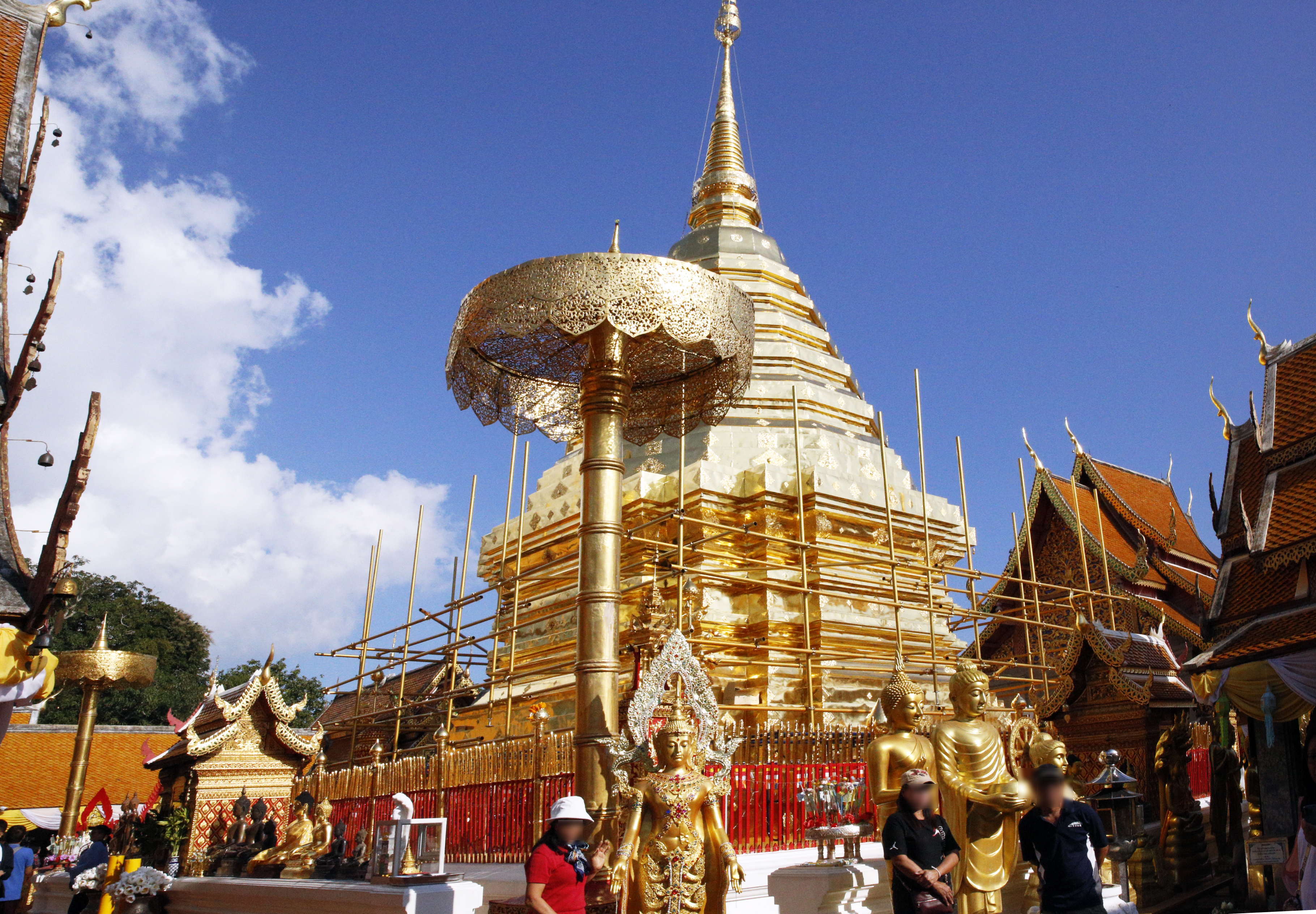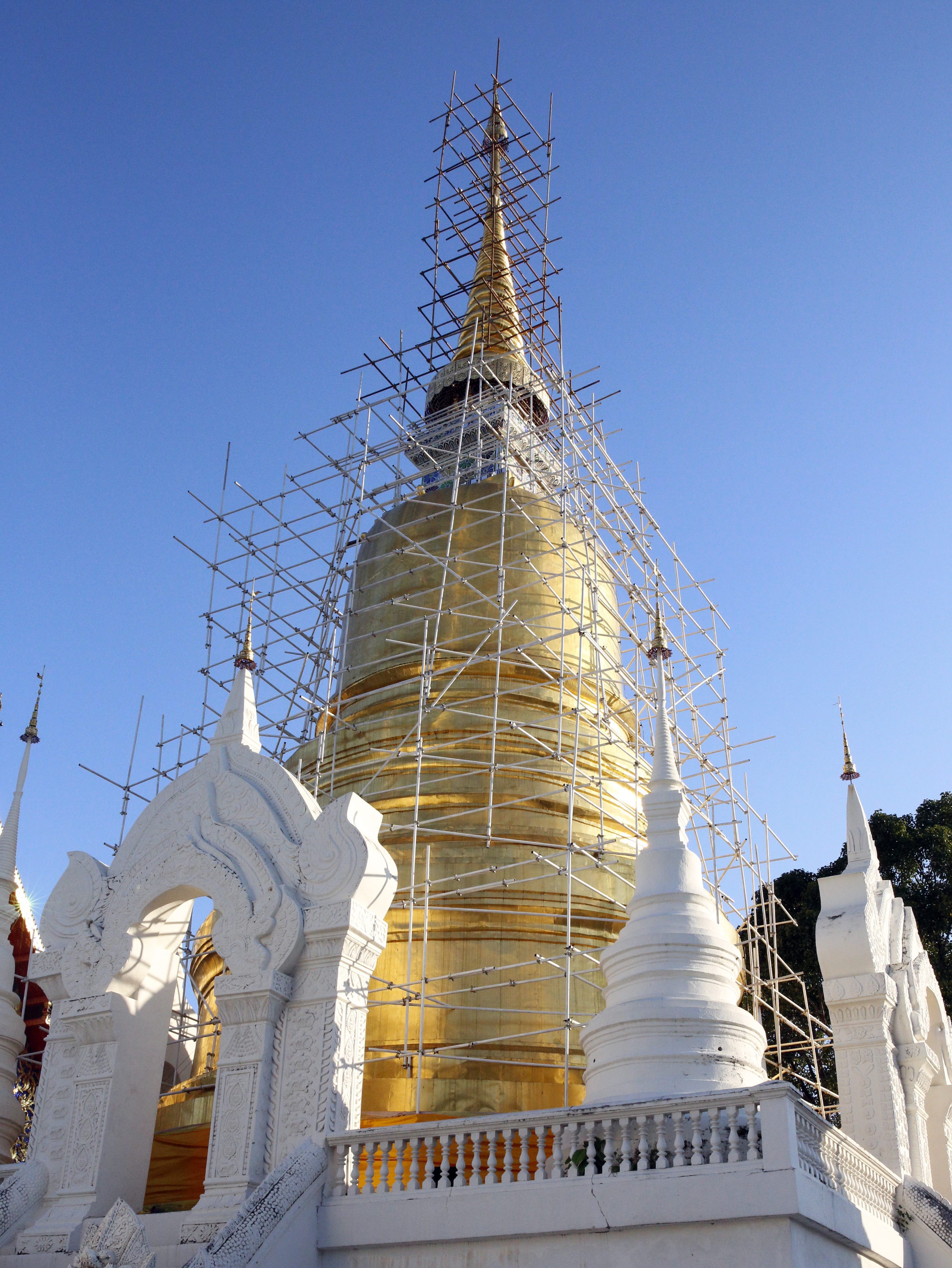 ワット・プラ・タート・ドイ・ステープ。ここの塔も修復中。ただ、足場の材を塔の色の金色にするなど粋である。