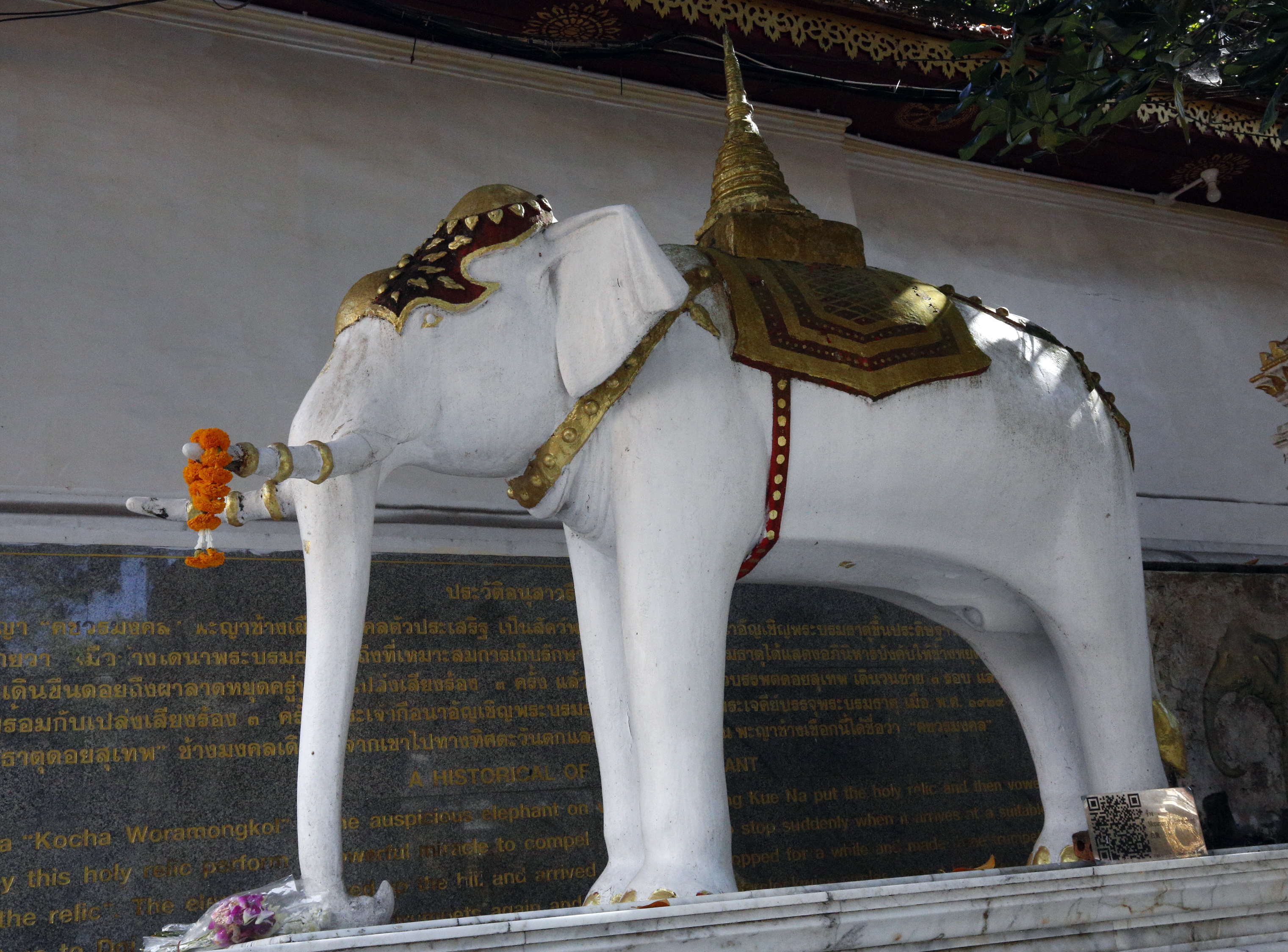 ところで、このスマナの仏舎利については次の話がある。仏舎利は収められようとした時、自ら二つに割れた。そこで、このワット・スアン・ドークに半分を収め、残りを1頭の白いゾウの背に載せた。すると象は勝手にチェンマイの西にあるドーイ・ステープ(ステープ山)を登っていき、あるところで甲高く3回鳴いて死んだ、というもの。皆、仏舎利が自らこの地を選んだと解釈し、その地にワット・プラ・タート・ドーイ・ステープを建て、2つ目の仏舎利を奉納したというものである。