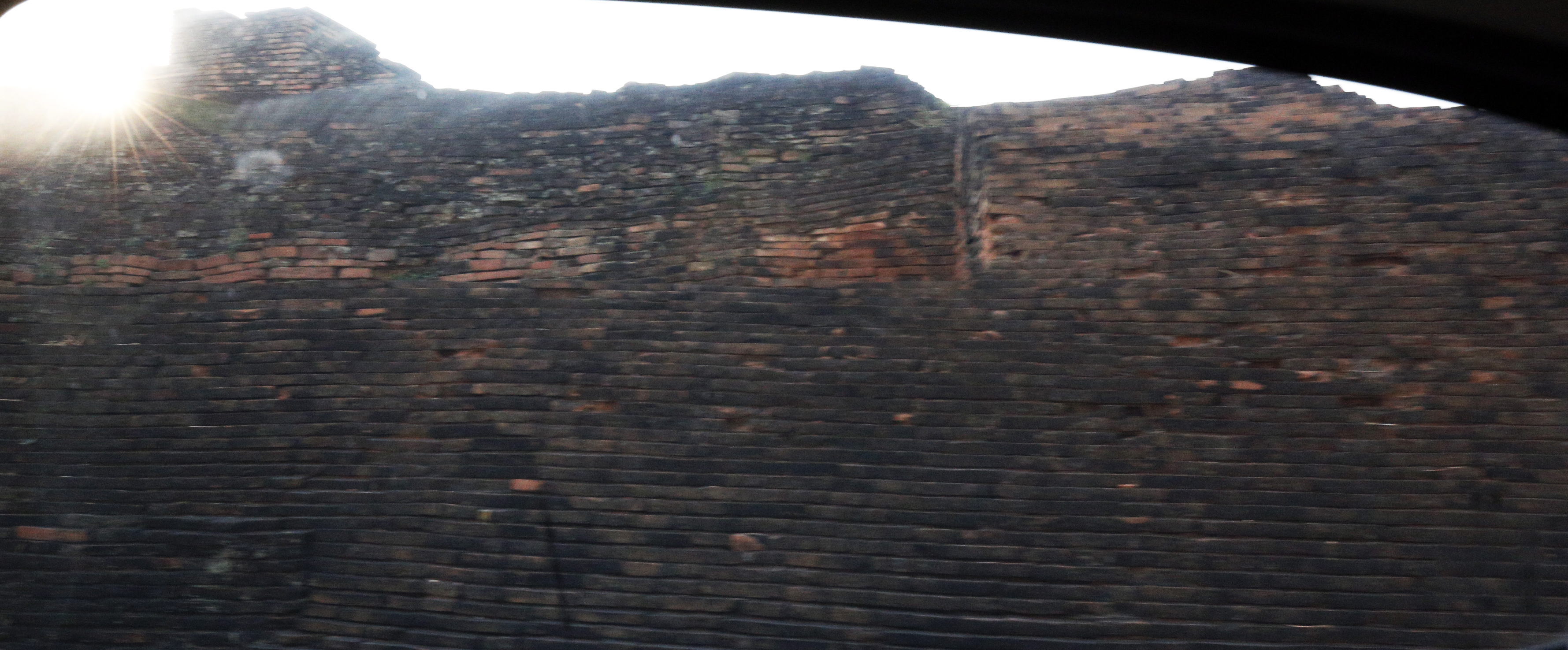左は1300年頃の地図。右は車内から撮った城壁の一部。