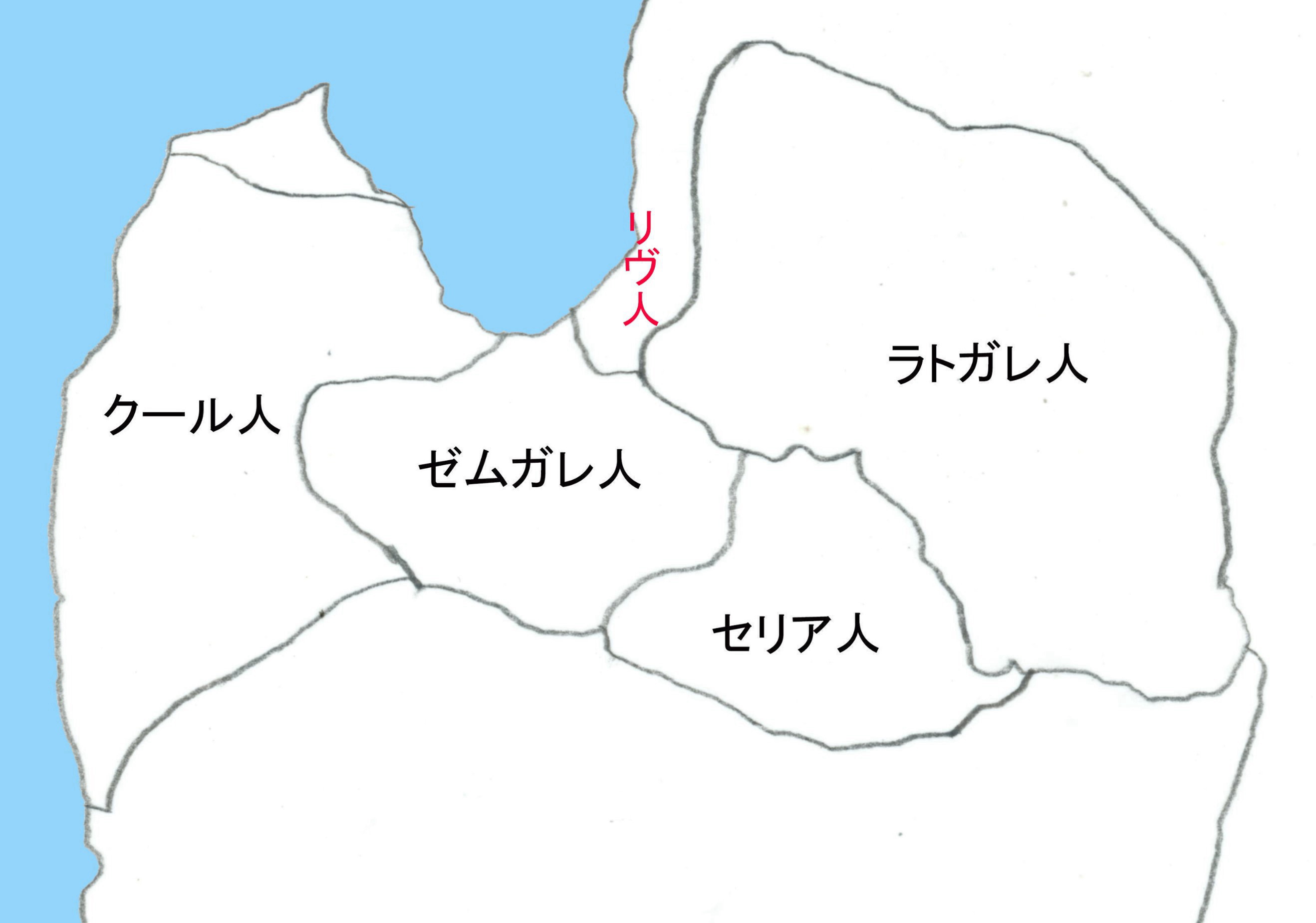 この後、クルゼメ地方は主にクール人、ゼムガレ地方はゼムガレ人、セリア地方はセリア人、ラトガレ地方はラトガレ人を中心に形成されていく。ヴィドゼメ(「中央」の意味)地方は、「そのような単一民族のルーツはないが、他の・・・民族の要素はすべて見て取れる。ヴィドゼメには、リヴ人とフィン・ウゴル人の痕跡が見られるリヴ系地域がある。ヴィドゼメの中央部には、ゼムガレの方言と非常によく似た方言の地域がある。ヴィドゼメには、・・・ラトガレの方言も一部残っている。 」