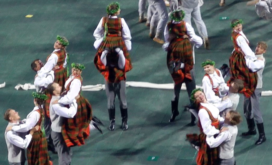 左はリガ市内のある公園でのミニコンサートで撮ったもの。右は踊りの祭典より。